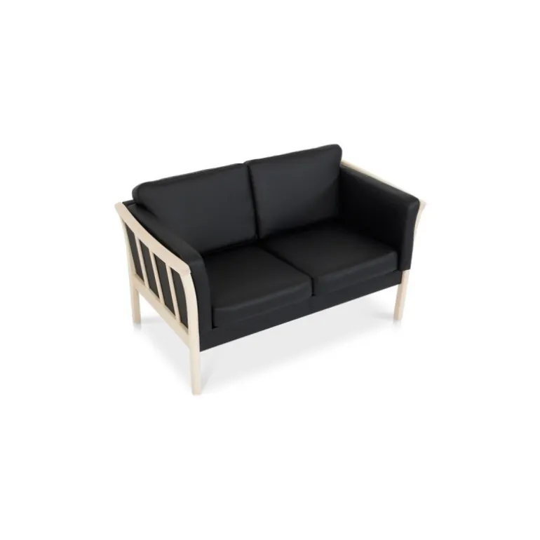 Dragør 3+2 pers. sofasæt i tidløst kvalitetsdesign, udført med kraftigt sort læder betræk og stilrene ubehandlede tremmegavle i massivt bøgetræ. Et klassisk sofasæt, som udmærker sig med yderst behagelig siddekomfort og enkle, indbydende former.