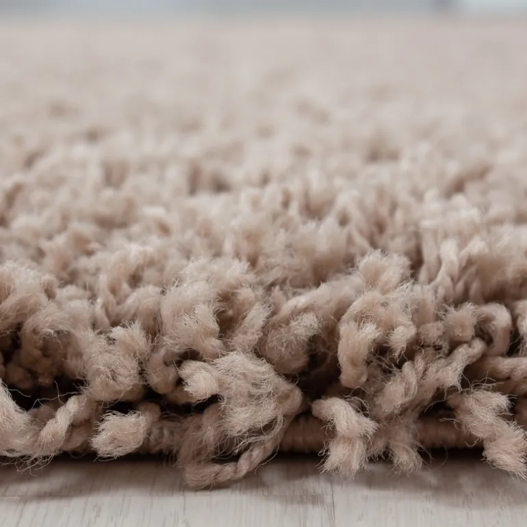 Dream Rund Shaggy tæppe Ensfarvet – Beige