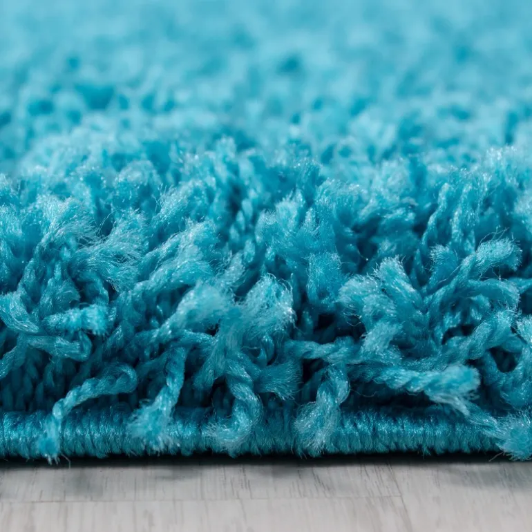 Dream Rund Shaggy tæppe Ensfarvet – Turkis