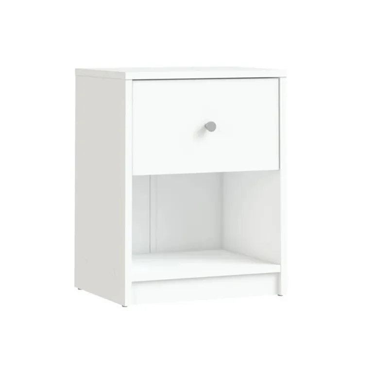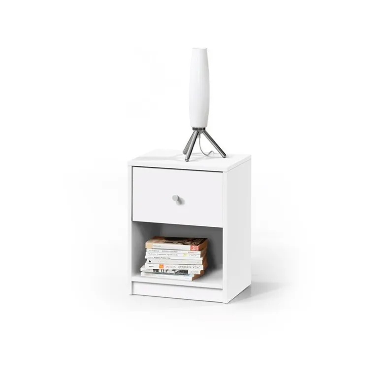 Drupe natbord hvid med 1 skuffe og lille hylde. Solidt og funktionelt lille natbord, med plads til en lampe eller andet brugskunst på toppen. Skab hygge i soveværelset med dette enkle bord.