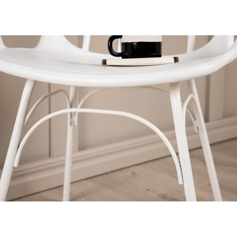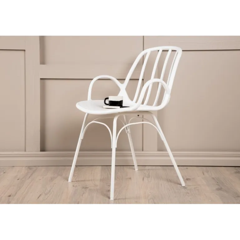 Spisebordsstolen fra Dyron-serien skaber hurtigt et imponerende fokuspunkt i hjemmets hjerte! Denne stol har et dekorativt og detaljeret design med buede former, integrerede armlæn og flarede ben, konsekvent lavet af holdbar plast og stål i en smagfuld hvid farve. Match den med et stilfuldt spisebord for at skabe et komplet Spisebordssæt til at samle familien til fremtidige måltider!