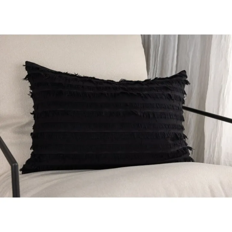 Skab et iøjnefaldende look med et sort pudebetræk, der giver din sofa et flot løft! Dette pudebetræk tilhører serien Edith og er lavet af slidstærkt bomuldsstof, der holder over tid. Betrækket har dekorative flæser, som skaber et pænt, lineært mønster. Kombiner med andre farver og størrelser for at skabe en varieret og modebevidst iøjnefaldende detalje til din indretning!