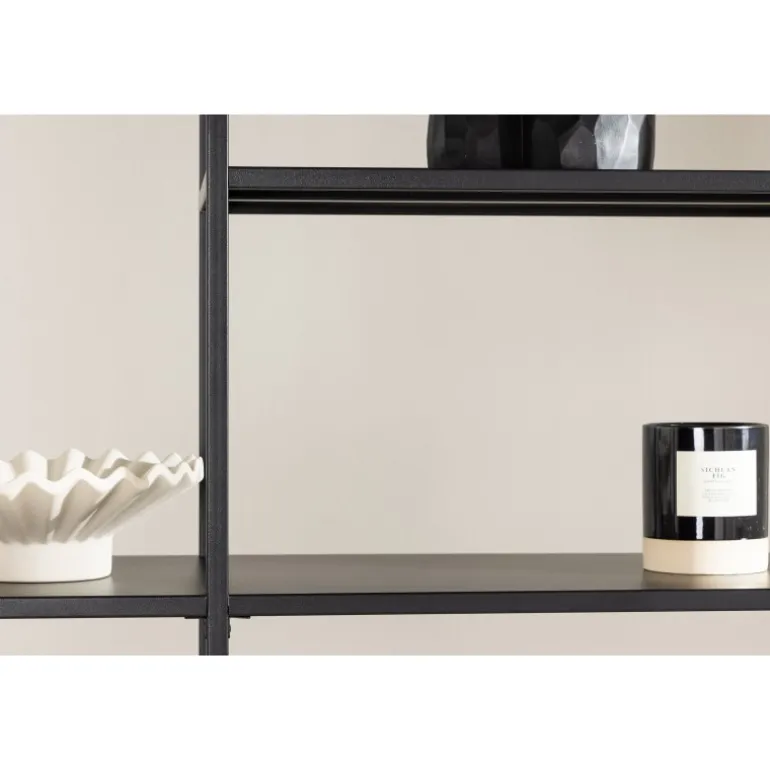 Dekorer din stue med de nyeste trends ved hjælp af en sort skandinavisk stilhylde – vi byder El Alto velkommen til Venture Home familien! Med sit gennemtænkte design og slanke strukturer, kombinerer El Alto perfekt klassisk finish og modernitet. Denne åbne hylde er skabt for alsidighed. Variér dit indhold på flere overflader med hylder i forskellige højder. Uanset om det er bøger, smukke vaser eller stemningsfulde lysestager, tilbyder El Alto et fleksibelt rum til din personlige kreativitet og indretningsstil. Hylden er lavet af sort pulverlakeret stål, hvilket komplementerer både traditionelle og moderne indretninger. Det er ikke bare et møbel – det er en statement-stykke. Skab din egen personlige oase med denne opbevaringshylde og indret dit hjems hjerte på en varm og hyggelig måde, med alle dine yndlingsgenstande samlet og organiseret på display!