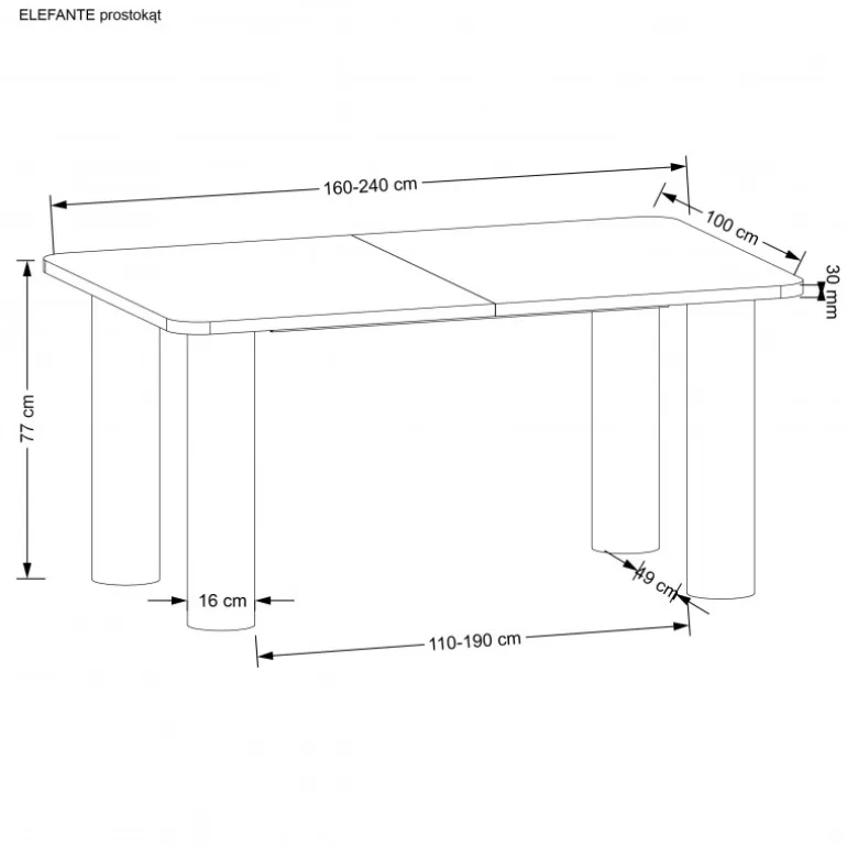- Udtræksfunktion: Juster nemt bordets længde fra 160 cm til 240 cm for at rumme flere gæster.