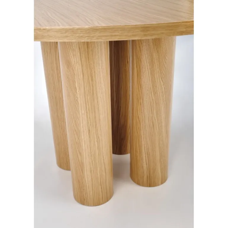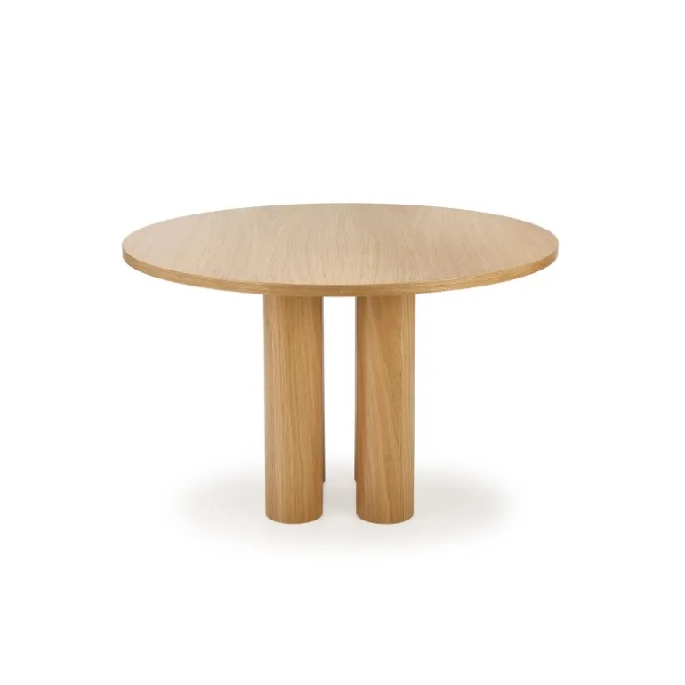 - Stilfuldt Design: Rundt bord med naturlig egetræsfinér, der bringer elegance til dit hjem.