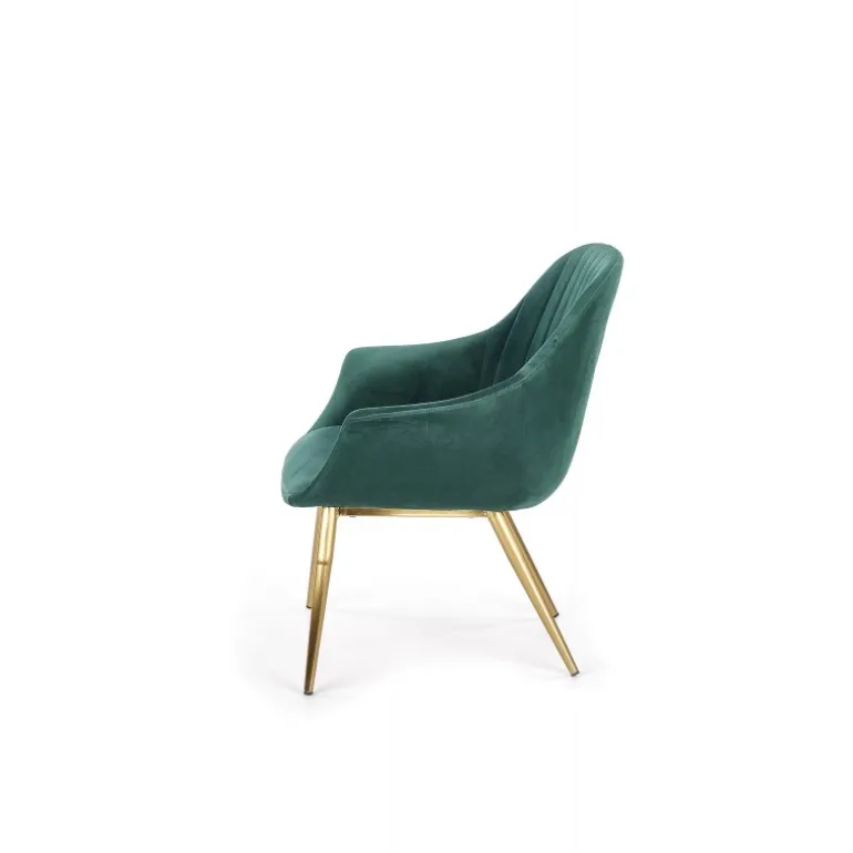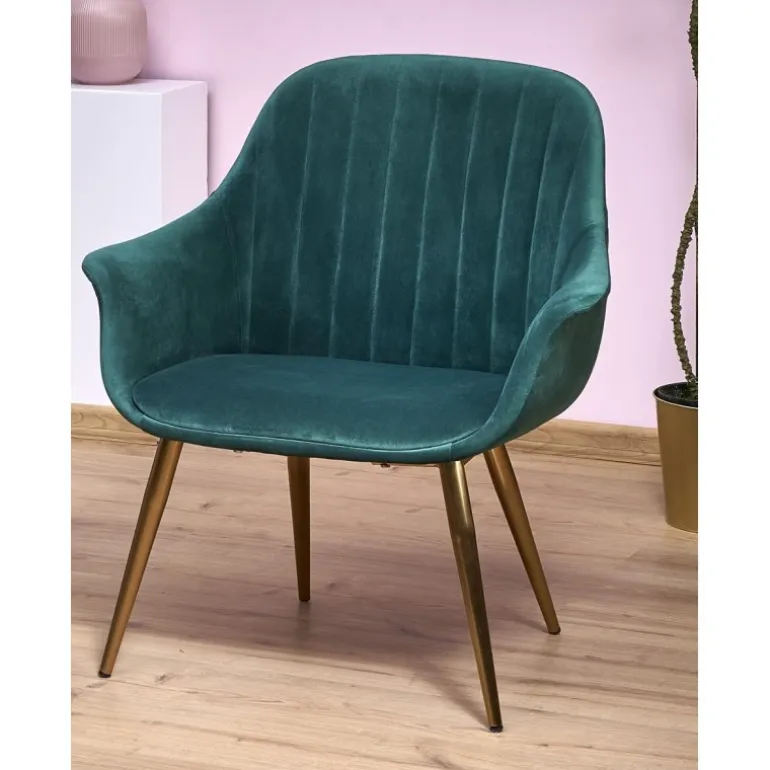 - Elegant design: Mørkegrøn polstring og gyldne ben for et luksuriøst look.