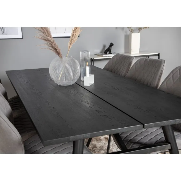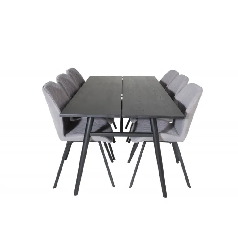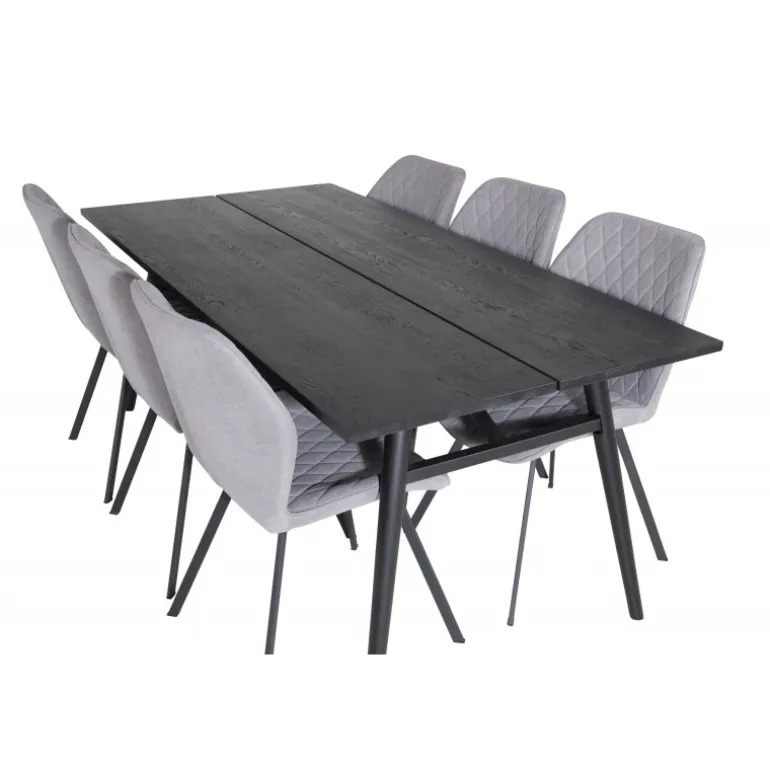 Spisebordet Elegant i et stilfuldt design, sammen med de grå spisestole Gemma – den perfekte kombination for dem, der ønsker en trendy Spisebordssæt. Den høje siddekomfort på stolene indbyder til lange og vidunderlige stunder til socialt samvær! Ideel til både daglig brug og særlige lejligheder, vil dette sæt tilføje et moderne præg til din indretning.