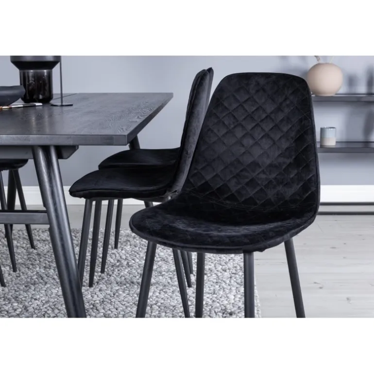 Oplev den perfekte kombination af komfort og stil med vores Elegant Rektangulær Spisebordssæt. Dette klassiske spisebordssæt passer ind i de fleste hjem og er ideelt til dem, der ønsker at skabe en hyggelig og moderne atmosfære. Spisebordet fra Sleek-kollektionen sammen med stolene fra Polar-serien giver dit hjem et tidløst og stilfuldt look. Med sin slanke sorte finish og højkvalitets materialer som krydsfiner og stål, tilbyder dette sæt både holdbarhed og elegance. Det kræver samling, men resultatet er bestemt besværet værd.