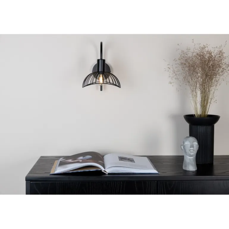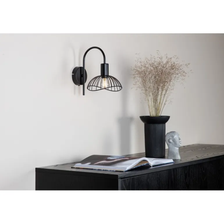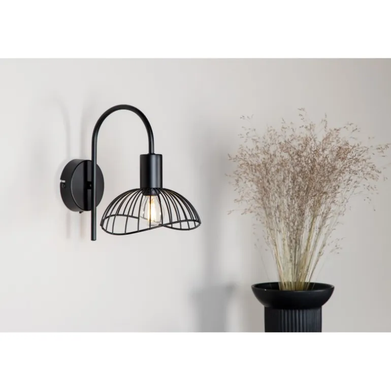 Denne væglampe fra Elsa-serien klatrer på trendlisterne! Lampen har et moderne design i form af en sort afrundet stålskærm og en stilfuld, flot beslag. De bløde former og den stilrene farve gør lampen til en smuk interiørdetalje, der holder over tid. Placér den over natbordet eller i læsehjørnet og nyd det herlige lys og øjenfaldende dekoration. Ved installation: En såkaldt fast installation er påkrævet, hvilket kun må udføres af en elektriker.