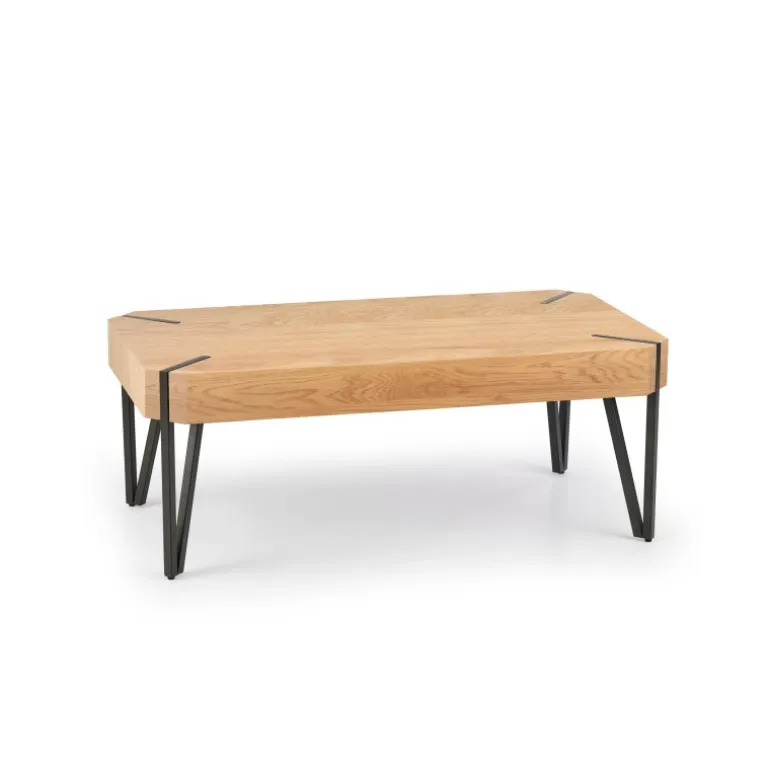 Oplev den perfekte blanding af stil og funktionalitet med EMILY sofabord i farverne gylden eg og Sort. Dette sofabord er skabt af lamineret MDF og pulverlakeret stål, hvilket sikrer langvarig holdbarhed og et moderne udseende. Med dimensionerne 110/60/42 cm passer dette bord perfekt ind i enhver stue. Den gyldne egetræsfinish kombineret med Sorte ben tilføjer en elegant touch, der nemt kan komplementere din eksisterende indretning. Vælg EMILY sofabord for en stilfuld og praktisk løsning til dit hjem.