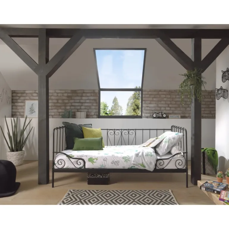Enkeltseng daybed 90 x 200 cm – Alice, sort metal