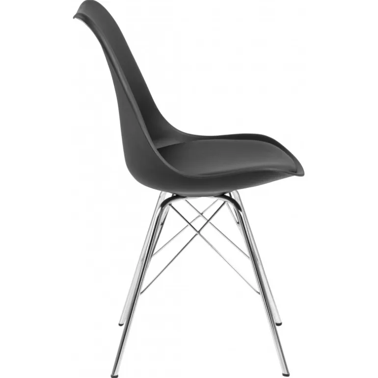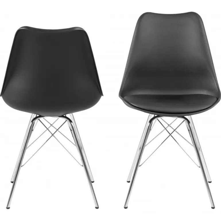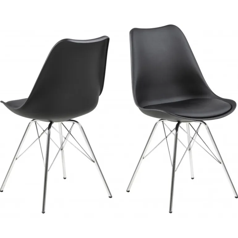 Eris spisebordsstol plastik sort, hynde sort PU, ben krom. Sælges i sæt á 4 stk. Prisen er pr. stol.