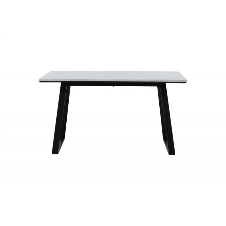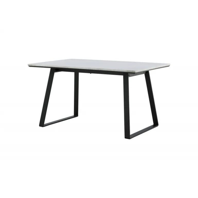Skab et indbydende midtpunkt i hjemmets hjerte med et stilfuldt spisebord fra Estelle-serien! Dette rektangulære spisebord har en lækker hvid/grå marmorbordplade og en metalramme. Det elegante design gør spisebordet lige så velegnet til festlige lejligheder som til hverdagsbrug! Plejeråd: Marmor er et porøst materiale, der er følsomt over for spild og syrer, så sørg altid for at tørre alt spild op med det samme. Nye marmor- og terrazzo- overflader bør altid behandles et par gange i begyndelsen. Overfladen bør behandles med “Protect Marble & Stone” fra Leathermaster alternativt påføres et tyndt lag paraffinolie/hvid olie.