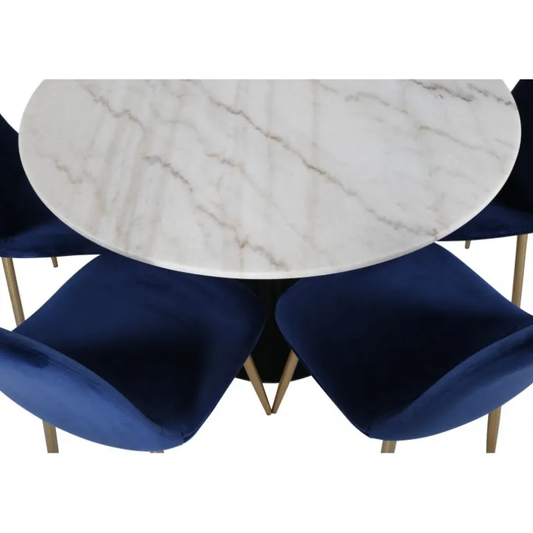 - Robust Konstruktion: Bordplade i marmor og stålramme sikrer langvarig holdbarhed.