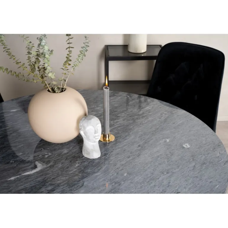 - Materialer af Høj Kvalitet: Bordplade i marmor og stel i stål sikrer holdbarhed.