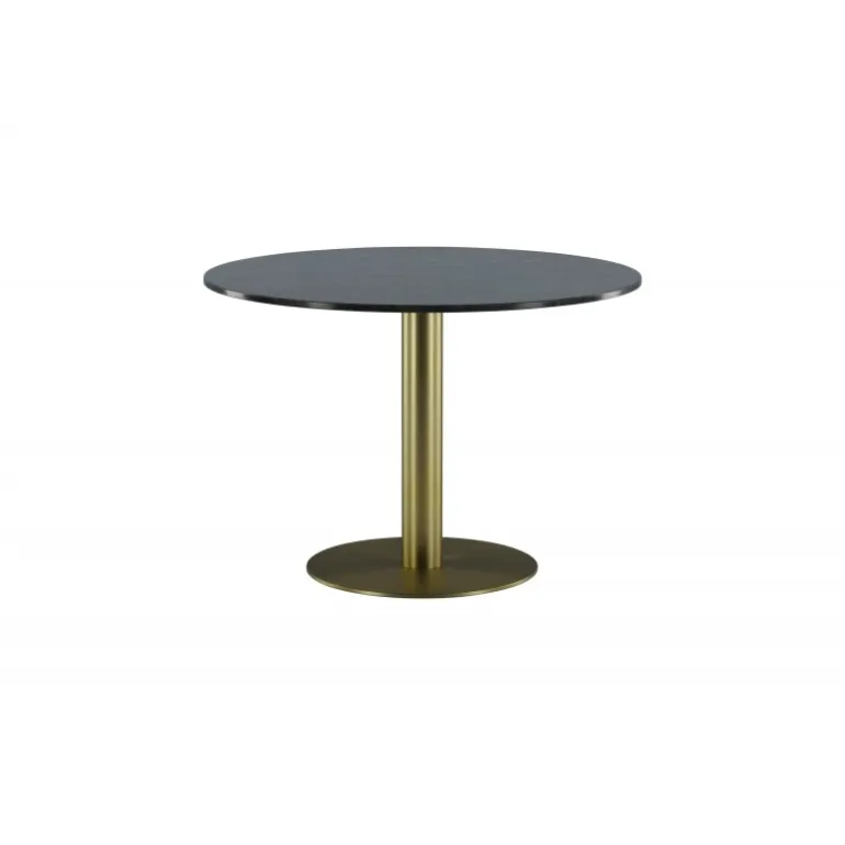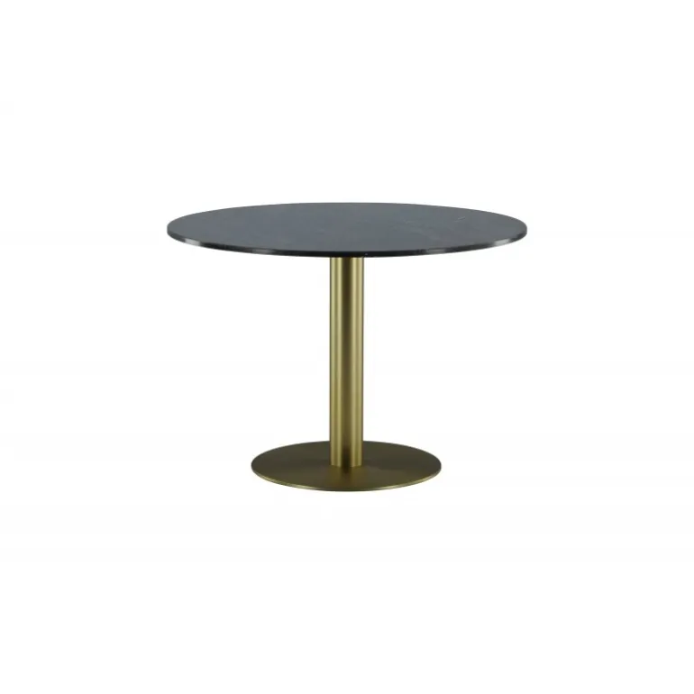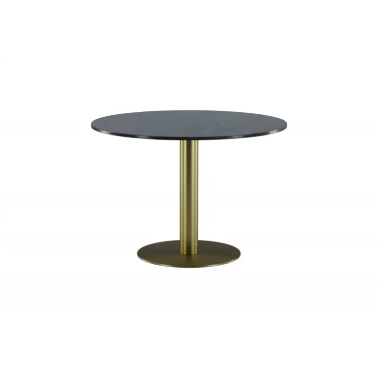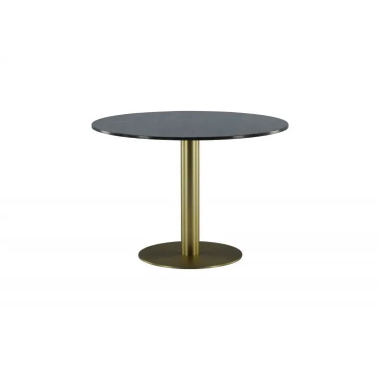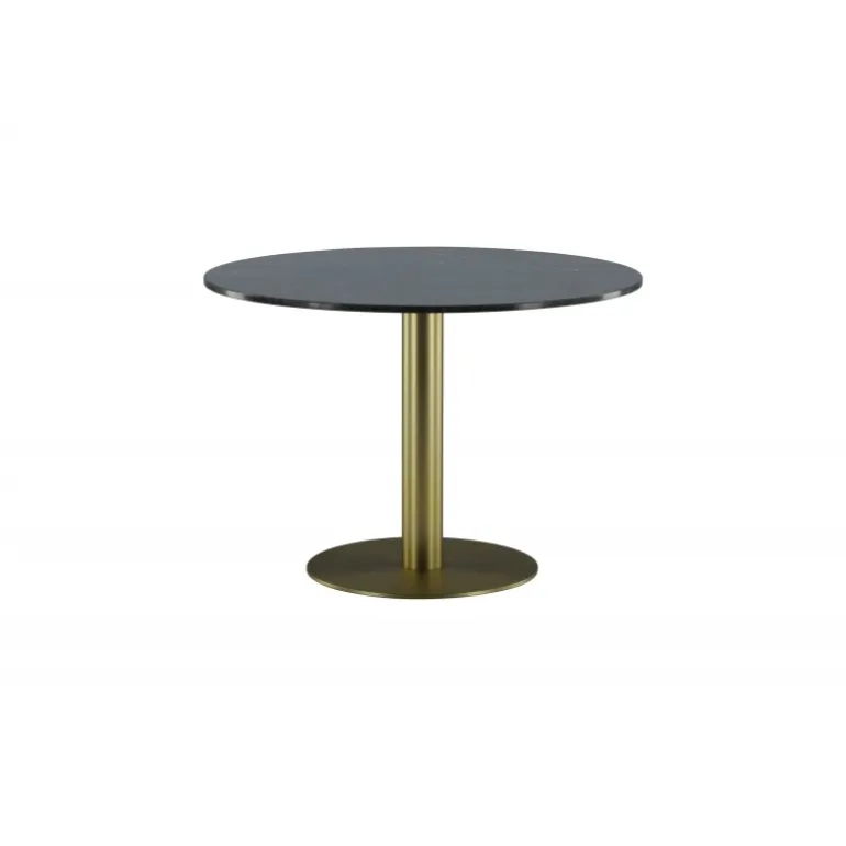 Estelle Rundt spisebord er et stilfuldt ikon til hjemmet og en behagelig midtpunkt for at samle familien! Estelle er et rundt spisebord i sort marmor med en dekorativ metalbase. Det elegante design gør spisebordet perfekt til både hverdag og fest. Hæv indretningsniveauet i dit hjem! Plejeråd: Marmor er et porøst materiale, der er følsomt over for spild og syrer, så sørg for altid at tørre alt spild op med det samme. Ny marmor og terrazzo bør altid behandles et par gange i begyndelsen. Pladen bør behandles med “Protect Marble & Stone” fra Leatchermaster, alternativt kan der påføres et tyndt lag paraffinolie/hvid olie.