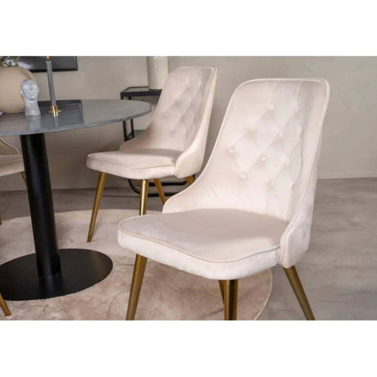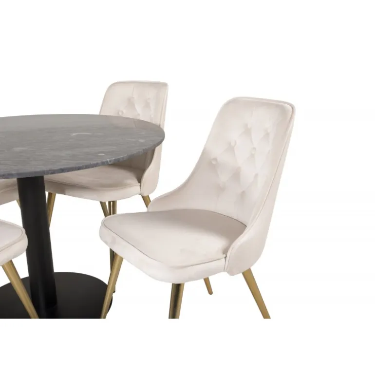 Hvad mere kan man ønske sig end et Spisebordssæt, der både er komfortabelt, stilfuldt og giver rummet en luksuriøs følelse? Det er præcis, hvad denne moderne kombination tilbyder! Spisebordet Estelle sammen med vores populære spisebordsstole i Velvet-serien. Lad hjemmets hjerte blive prydet af dette iøjnefaldende Spisebordssæt.