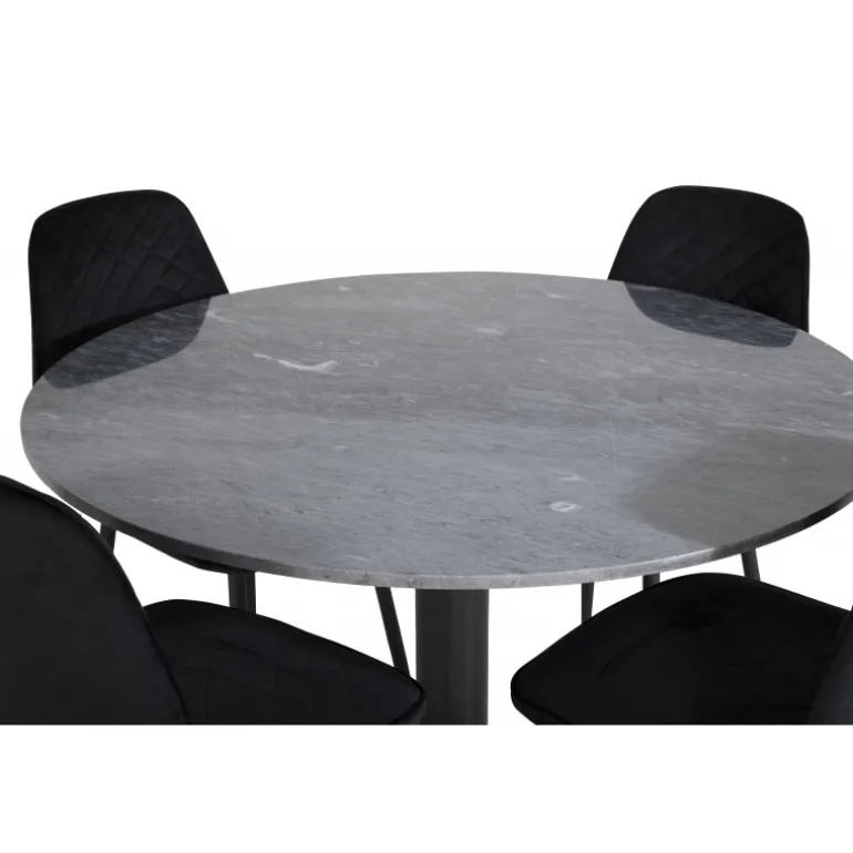 - Høj kvalitet: Bordplade i marmor og stole af krydsfiner og stål sikrer holdbarhed og et luksuriøst look.