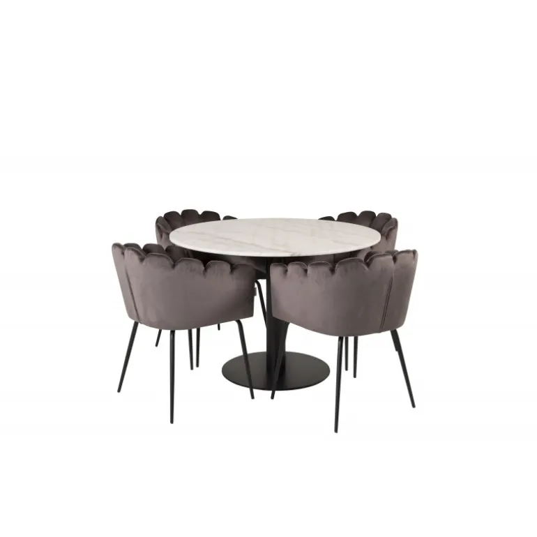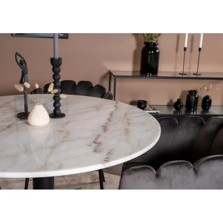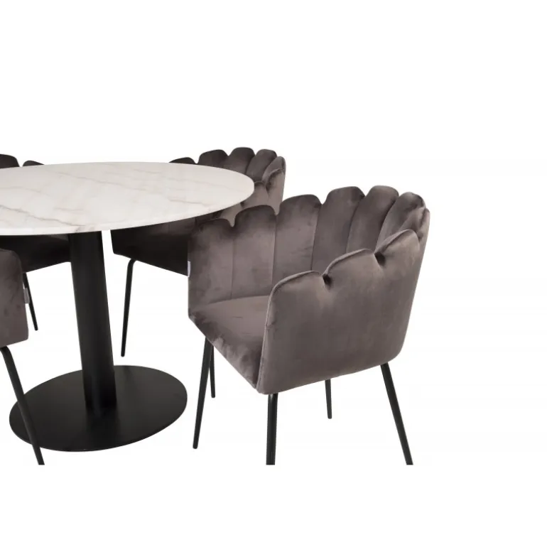 Estelle Rundt Spisebordssæt kombinerer en stilfuld marmorbord fra Estelle-serien med komfortable stole fra Limhamn-serien. Skab et hyggeligt og socialt miljø med plads til god mad og samvær. Med sit elegante design passer dette sæt perfekt ind i ethvert moderne hjem.