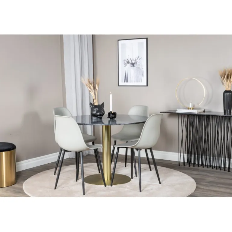 Oplev et elegant og tidløst look med vores Estelle Rundt Spisebordssæt. Dette sæt kombinerer en stilfuld marmor spisebord fra Estelle-serien med de klassiske stole fra Polar-serien. En perfekt løsning til enhver spisestue, der bringer både funktionalitet og luksus. Med materialer som marmor, plastik og stål sikrer dette sæt holdbarhed og langvarig brug. Skab et hjem, du længes efter at komme tilbage til med dette enestående Spisebordssæt.