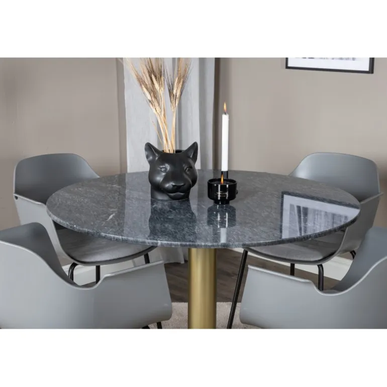 Det elegante marmor spisebord i Estelle-serien er kombineret med ramme stole i Comfort-serien i et trendy design. Spisebordssættet er perfekt til dem, der ønsker at skabe en hyggelig og moderne atmosfære i hjemmet.