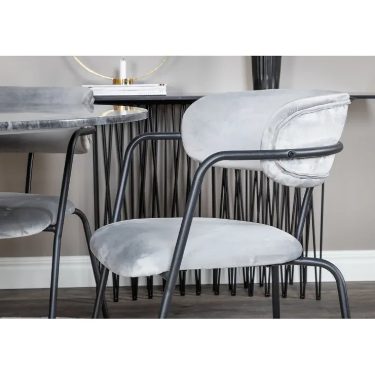 - Slankt og moderne design: Estelle spisebordet og Arrow spisestolene giver et elegant look til dit hjem.
