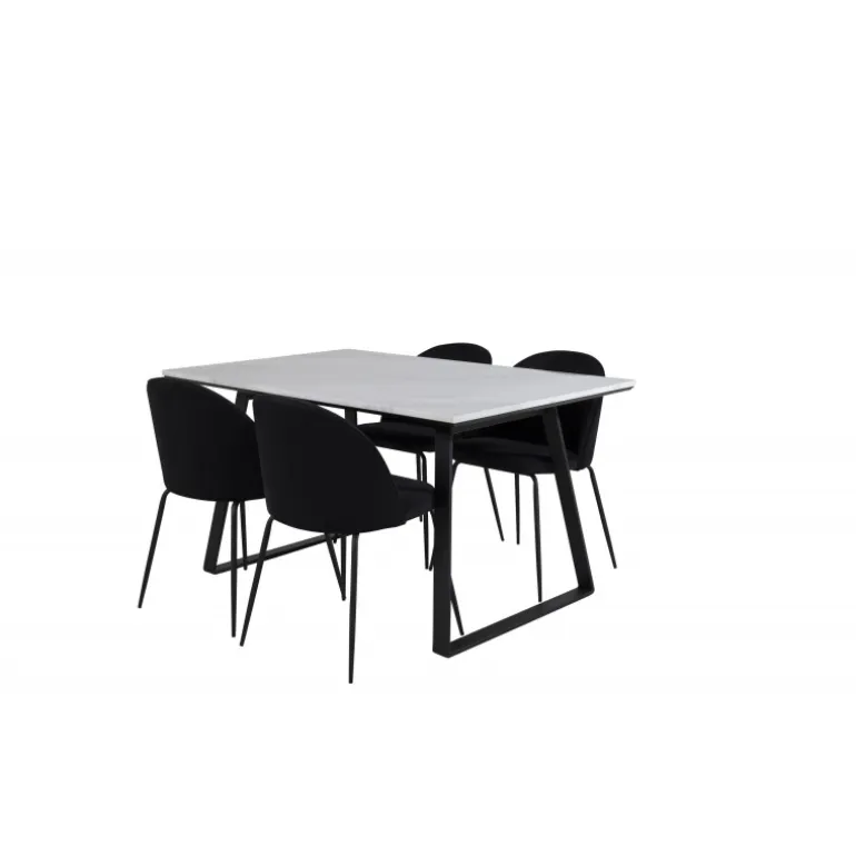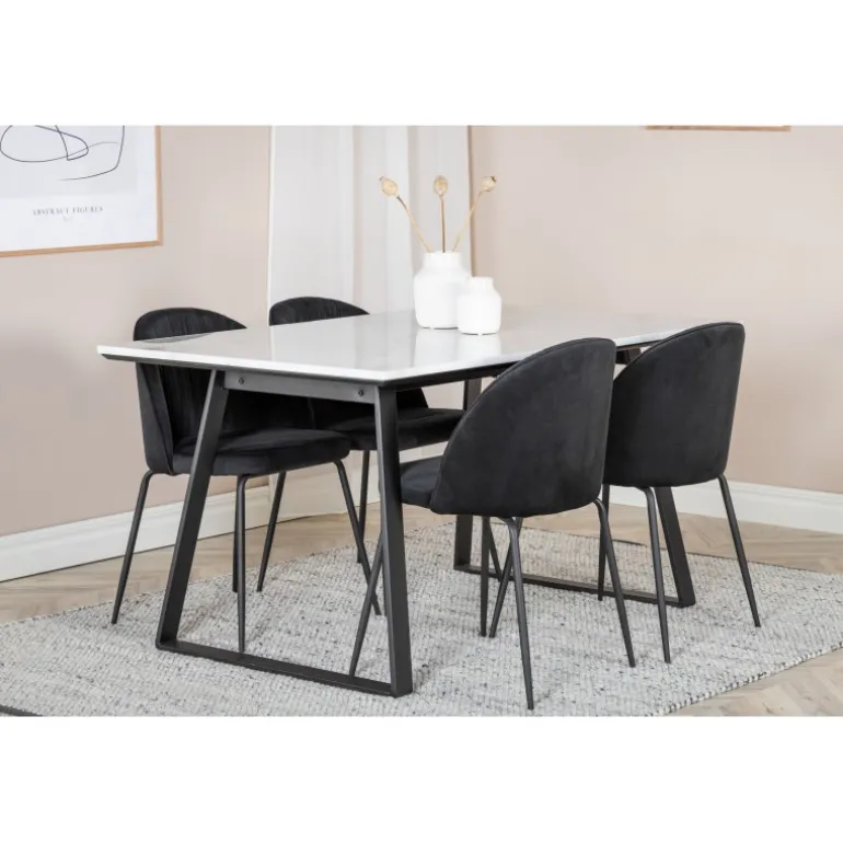 Spisebord Estelle i et slankt design, sammen med spisestole Wrinkles – den perfekte kombination for dem, der ønsker en trendy Spisebordssæt. Stolens høje siddekomfort inviterer til lange og vidunderlige stunder for socialt samvær!