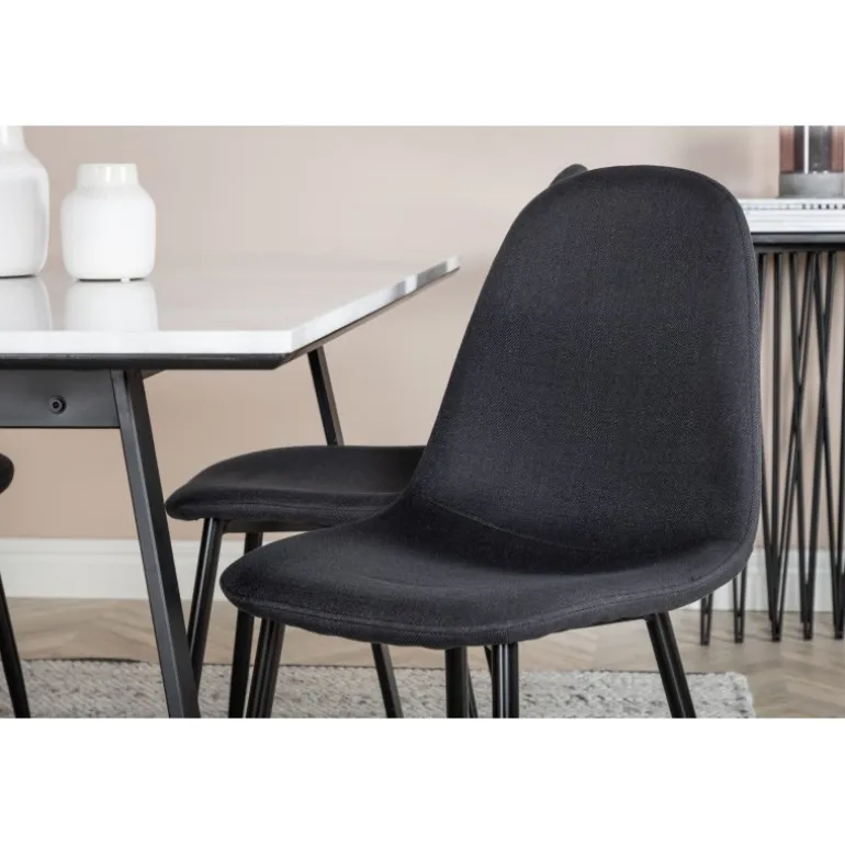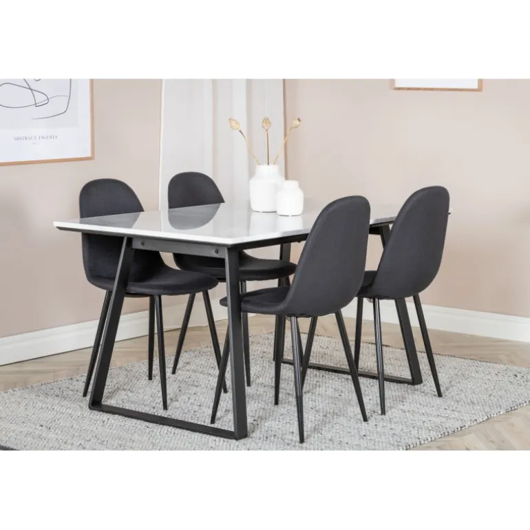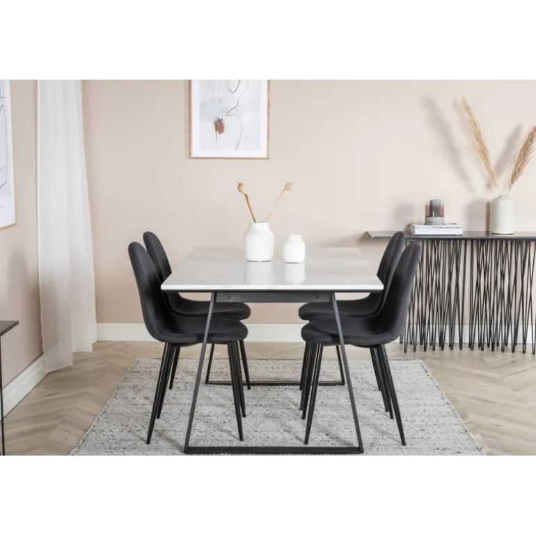 Spisebord Estelle i et slankt design sammen med Polar spisestole – den perfekte kombination for dem, der ønsker en trendy Spisebordssæt. Den høje siddekomfort af stolene inviterer til lange og vidunderlige øjeblikke med socialt samvær!