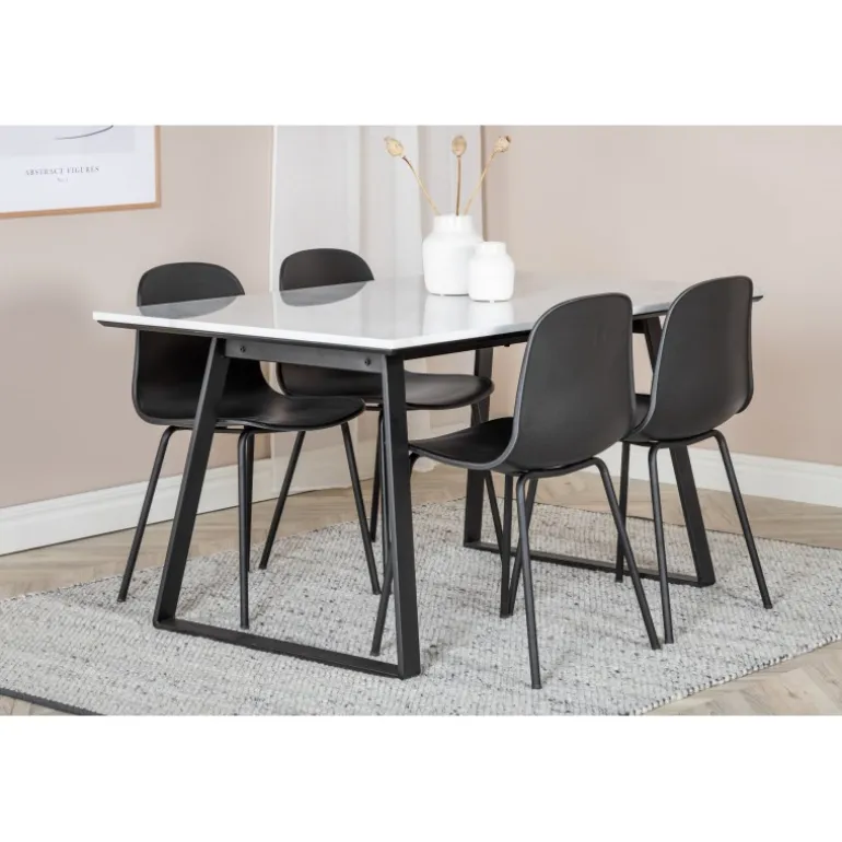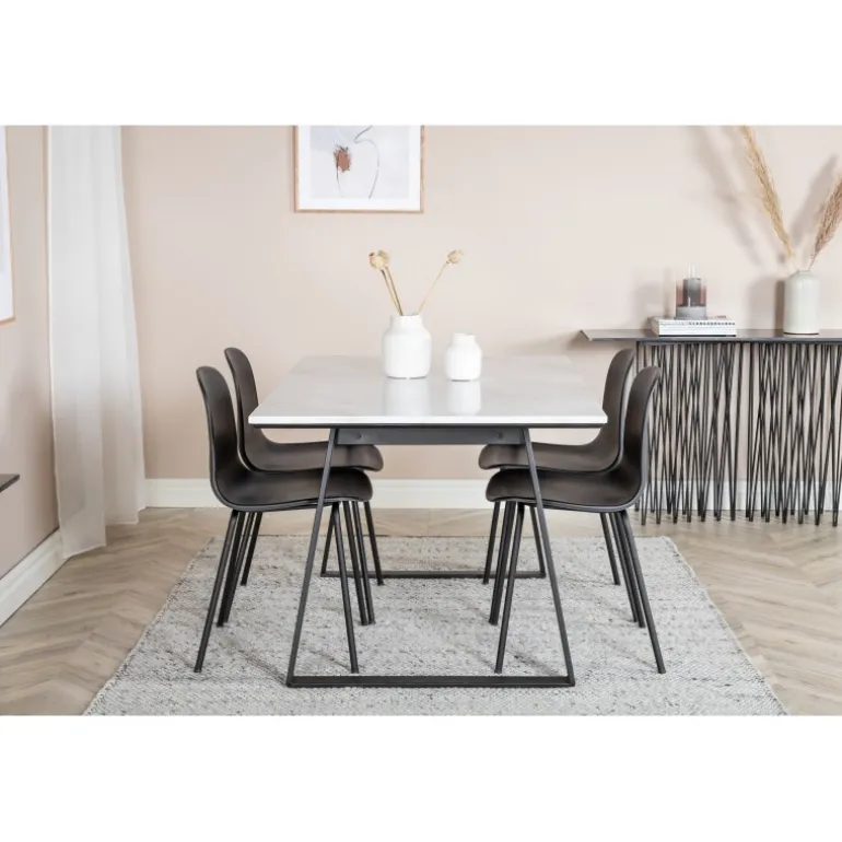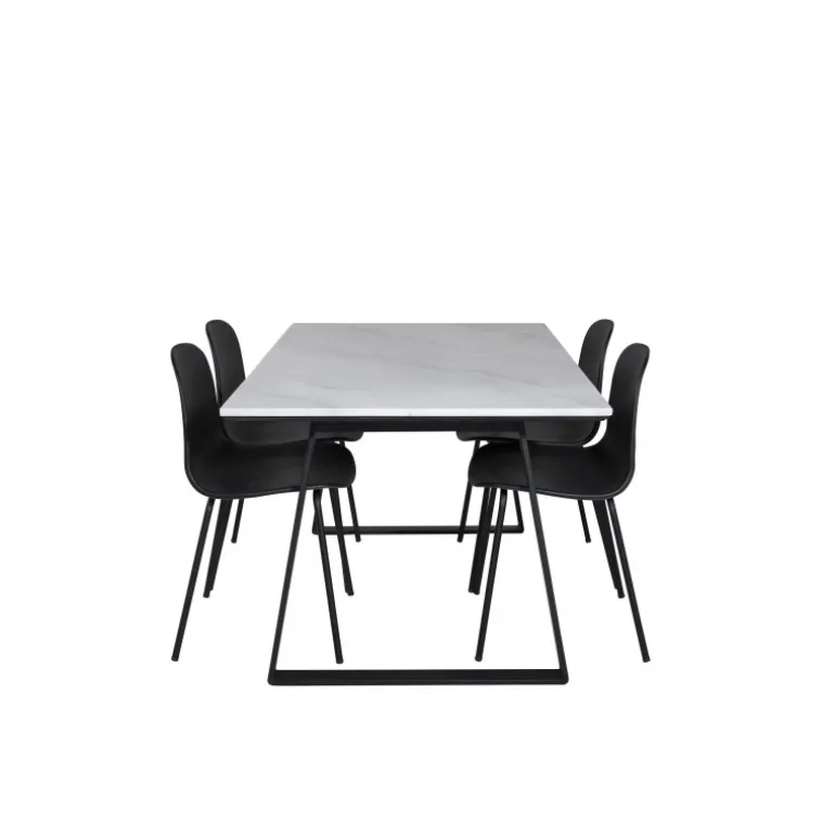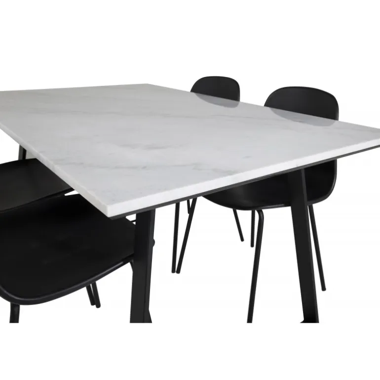Oplev en madgruppe i moderne og stilfuldt design med Estelle Rektangulær Spisebordssæt. Dette sæt, bestående af Estelle spisebord og Arctic spisestole, er den perfekte kombination til hjemmets hjerte. Det passer sandsynligvis lige så godt til dine behov som til din øvrige indretning. Marmor bordpladen og plastik-stål kombinationen i stolene giver både elegance og holdbarhed.