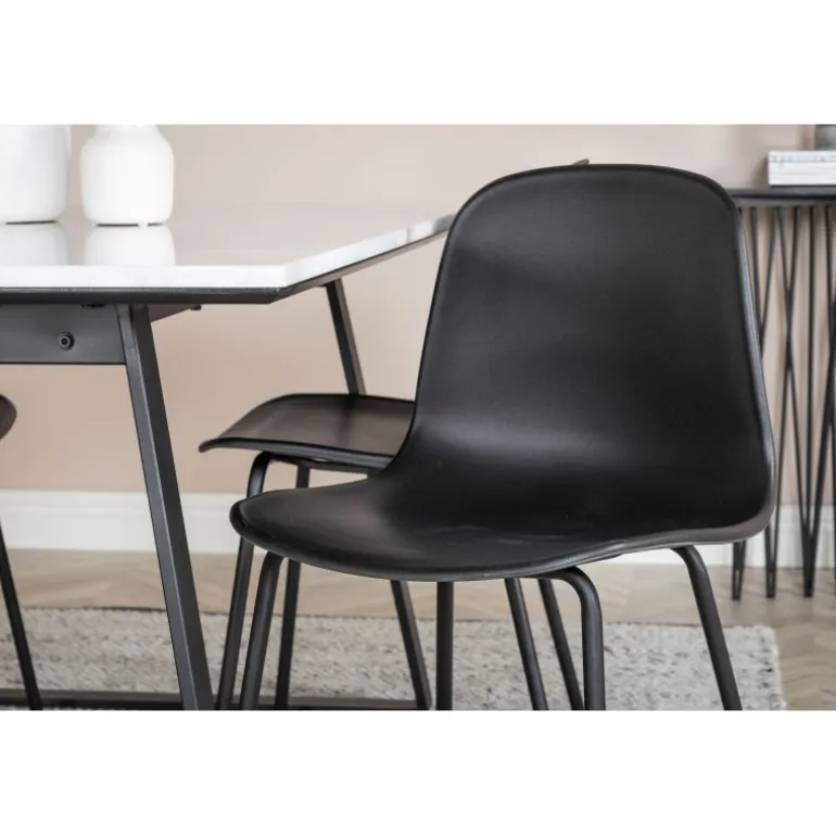 - Kombination: Perfekt match mellem bord og stole for et sammenhængende look.