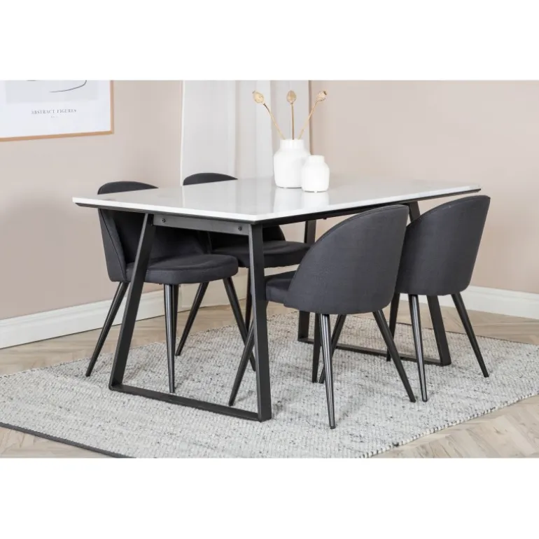 Køb af en forudsamlet spisestuegruppe er både trendsikker og praktisk! Her kombinerer vi vores spisebord Estelle med vores komfortable spisestuestole Velvet. Lad hjertet af dit hjem blive præget af din nye iøjnefaldende spisestuegruppe.