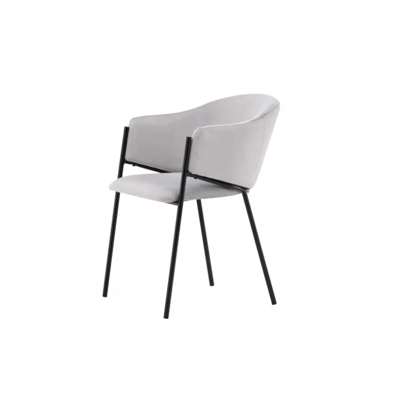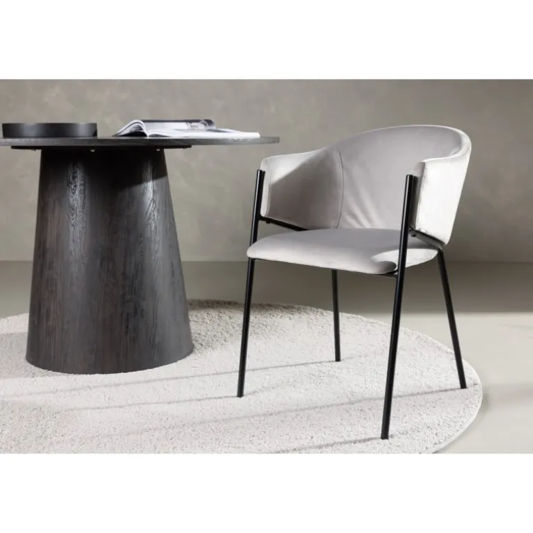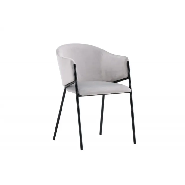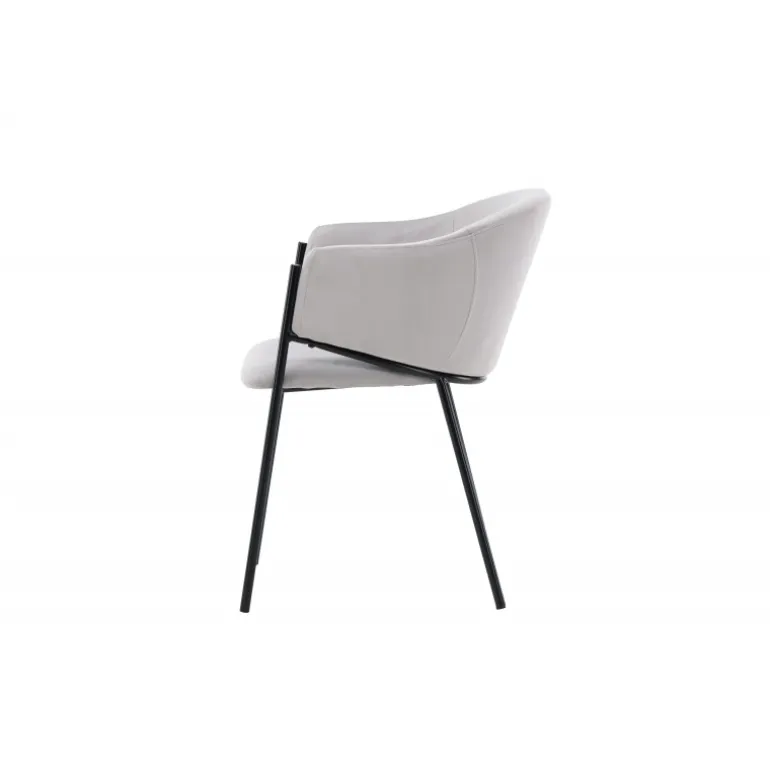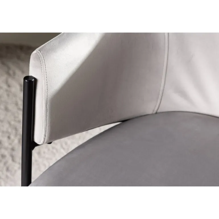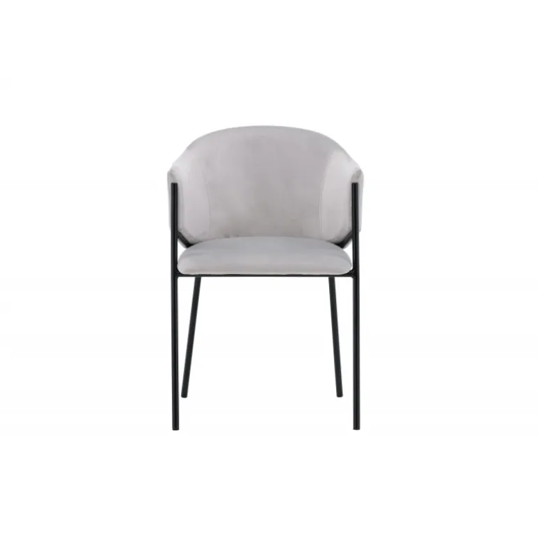 Evelina spisebordsstolen har et nostalgisk udtryk, er lige så stilfuld som komfortabel og skaber et luksuriøst blikfang omkring dit spisebord! Stolen har et fuldt polstret sæde med en rundet ryglæn i lysegrå fløjlstof og dekorative, minimalistiske ben i sort stål. Det trendsikre design imponerer og er helt i tråd med tidens trends. Sid komfortabelt og nyd måltiderne i disse elegante spisebordsstole!