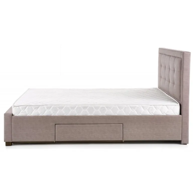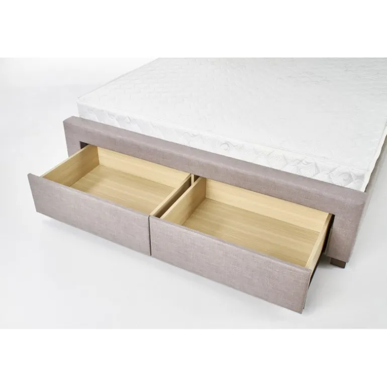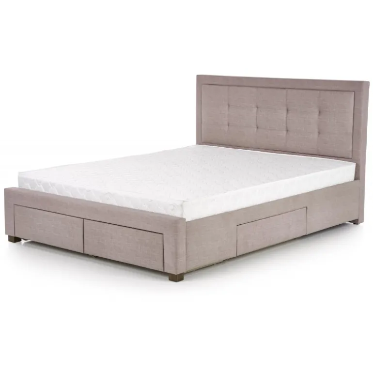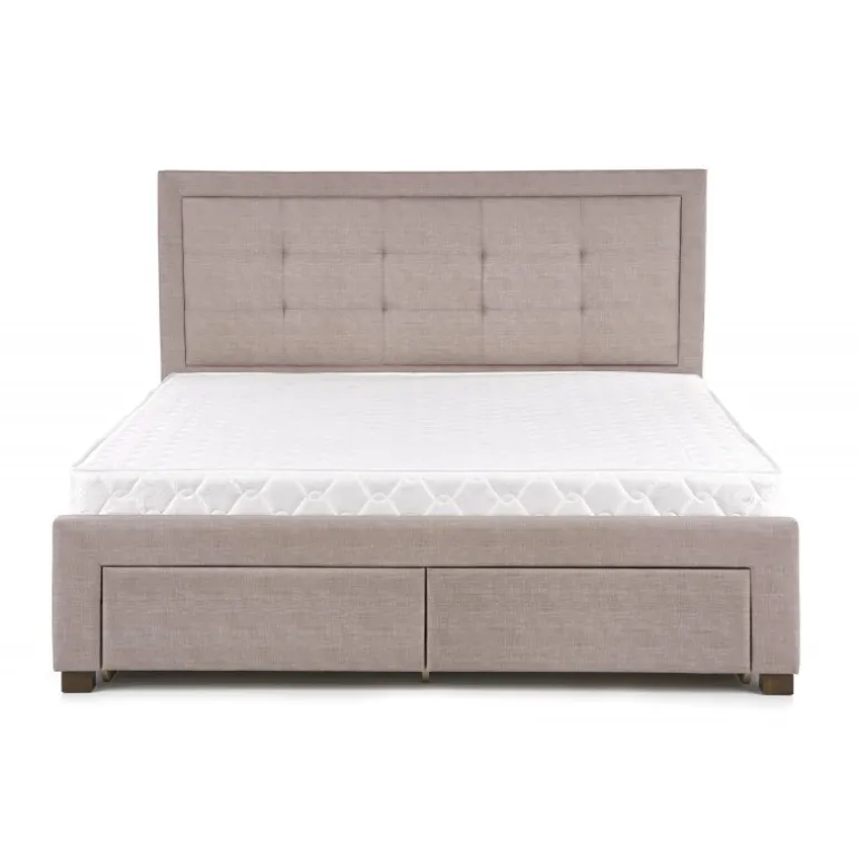 - Elegant beige stof og valnøddetræ, der passer til de fleste indretninger