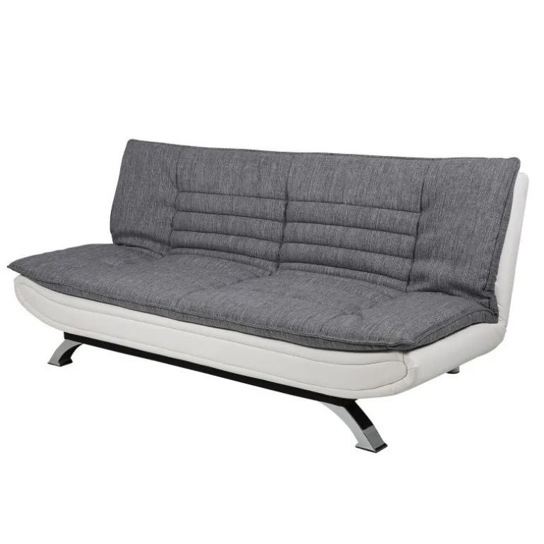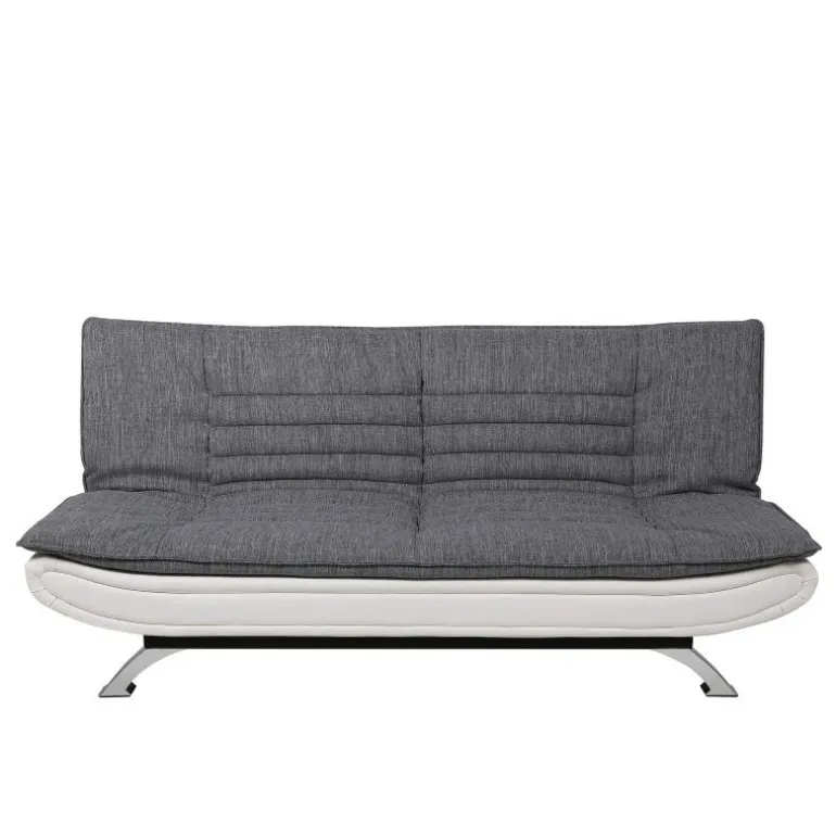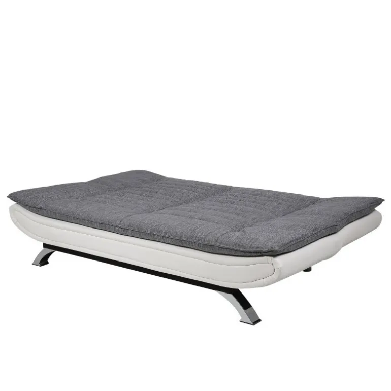Tristan sovesofa i et innovativt design med lysegråt stof på overdelen, samt bund i hvidt læderlook og med ben udført i metal krom. En behagelig sovesofa med god sidde og liggekomfort, der passer ind i de fleste indretninger.
