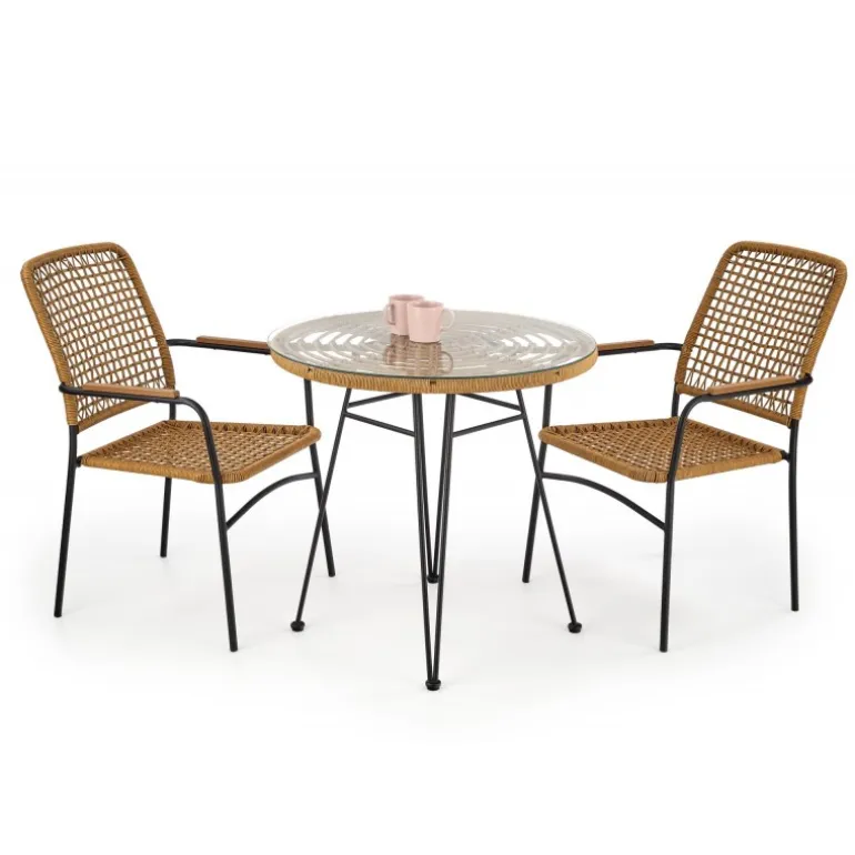 - Materiale: Glas, syntetisk rattan og pulverlakeret stål