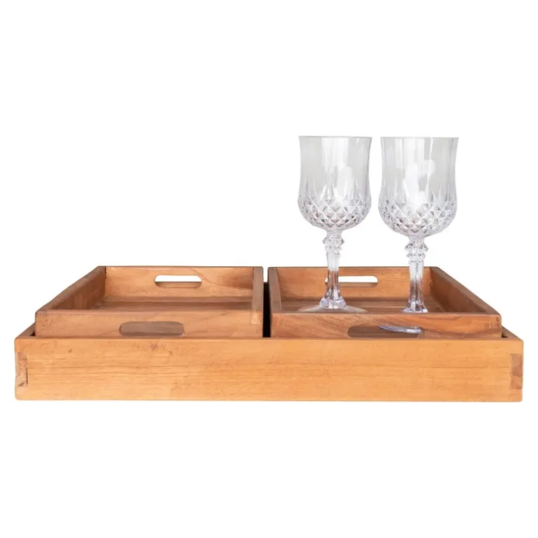 3 bakker i teaktræ. Teak
