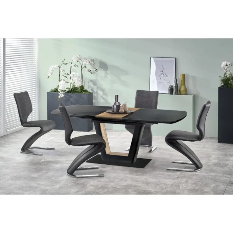 FARREL Spisebord med udtræk kombinerer stilfuldt design med funktionalitet og er perfekt til både små og store sammenkomster. Bordet har en justerbar længde fra 160 cm til 200 cm, hvilket giver dig fleksibilitet til at tilpasse det til enhver begivenhed. Lavet af glas, lakeret MDF, lamineret MDF og pulverlakeret stål, sikrer dette bord både holdbarhed og et moderne udseende. Kommer i en elegant Sort og valnød farvekombination.