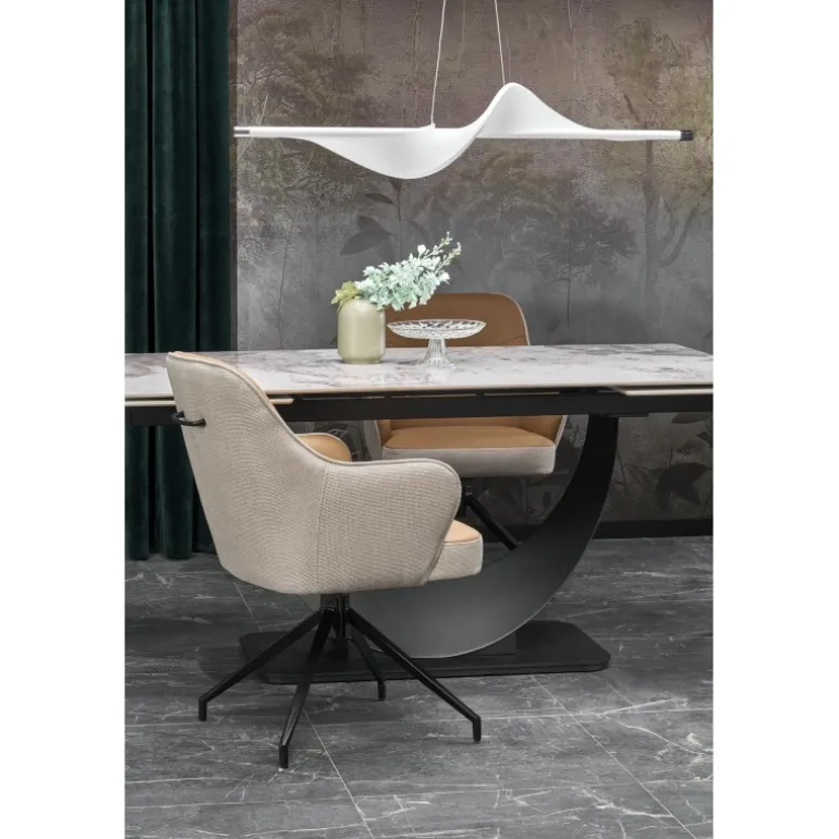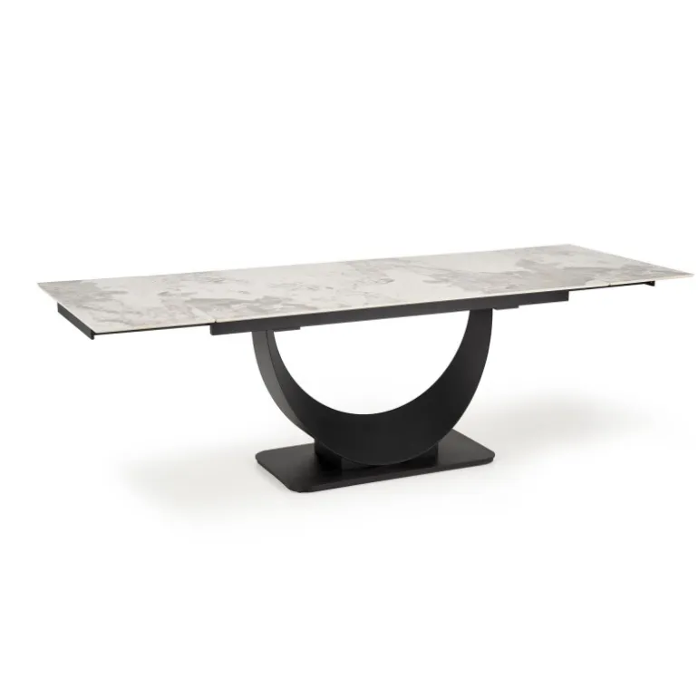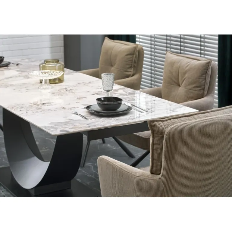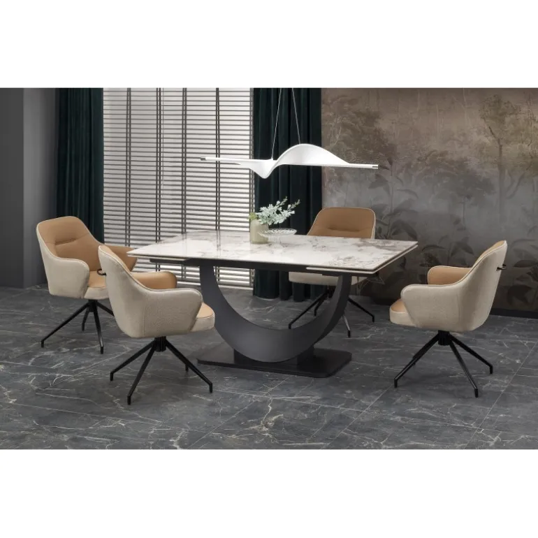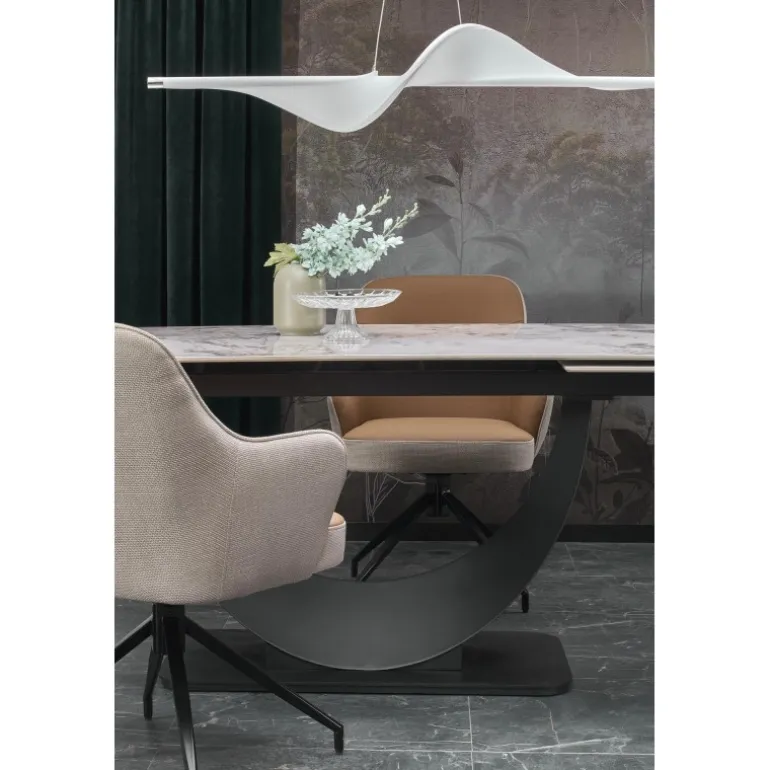 FERNANDO Spisebord med udtræket kombinerer elegance og funktionalitet med sin hvide marmorbordplade og Sorte ben. Perfekt til både mindre og større sammenkomster, kan dette bord nemt udvides fra 160 cm til 240 cm. Bordpladen er lavet af holdbart sinteret sten, mens benene er fremstillet af pulverlakeret stål, hvilket sikrer både styrke og stil. Dette moderne design passer ind i enhver spisestue og tilføjer et strejf af luksus. Med mål på 160-240/92/75 cm og en nettovægt på 133,500 kg, er FERNANDO Spisebord med udtræket det ideelle valg for dem, der ønsker kvalitet og æstetik i deres hjem.