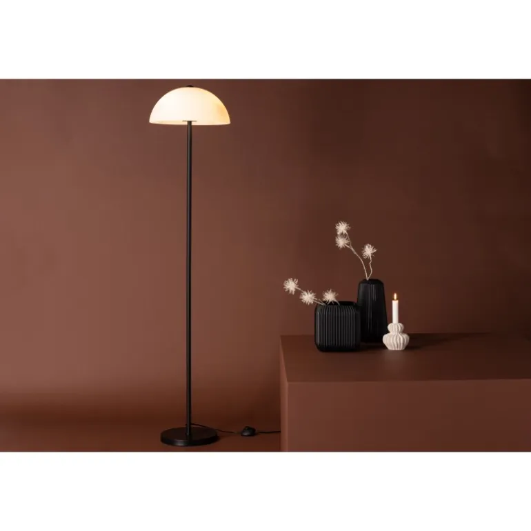 Med Ferrand får du en klassisk gulvlampe med et moderne touch! Lampen har et nordisk design med en stilfuld lampefod i sort jern og en hvid lampeskærm i glas. Denne lampe passer ind i alle hjem og indretningsstile og kan placeres i næsten ethvert rum. Den udsender et smukt skær, der lyser hjemmet op og skaber en hyggelig og harmonisk atmosfære. Lys op i et mørkt hjørne i stuen, eller hvorfor ikke placere den ved læsehjørnet. Dimensioner: 155x35x35