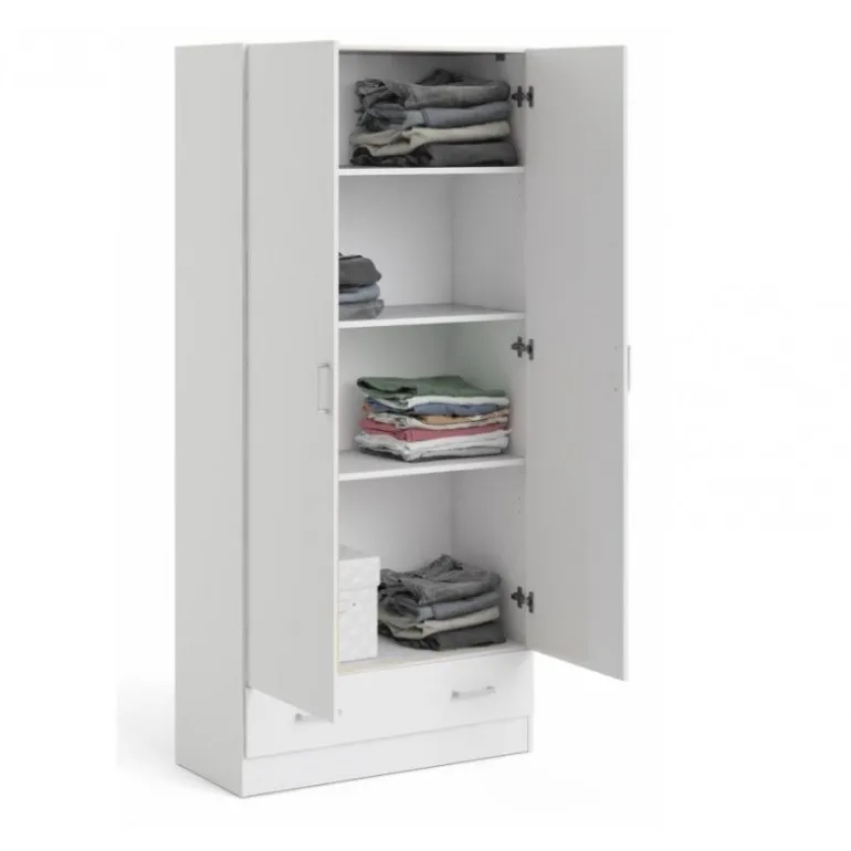 Fiesta entreskab kommer i et tidsløst design, der har vægt på funktionalitet og gode opbevaringsmuligheder, der samtidig ikke går på kompromis med det stilfulde design et enkelt og elegant skab med en struktur i hvid eg. Serien byder på forskellige skabe, bredder, højder og farver.