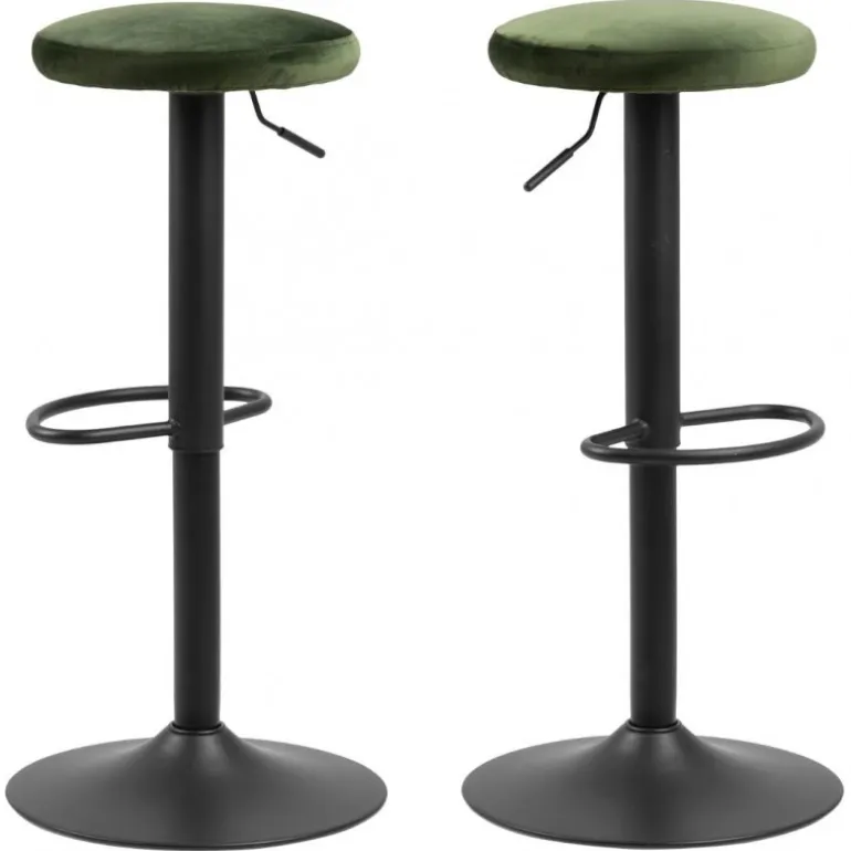 Finch barstol sæde VIC stof skovgrøn 68AC, fodstøtte, trompetfod pulverlakeret ru, mat sort, pakning 2 stk