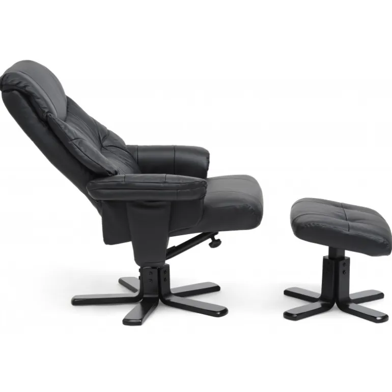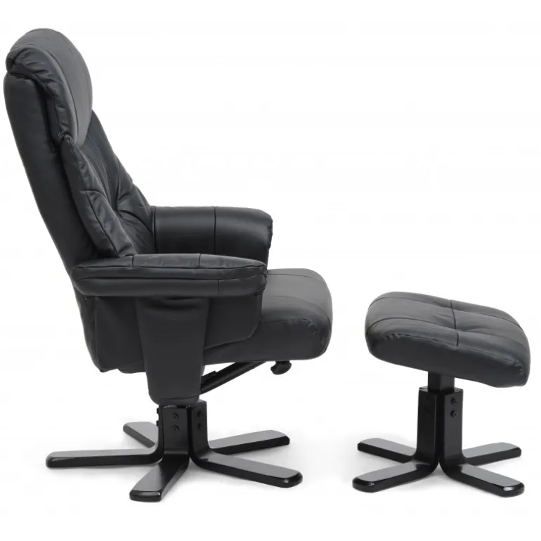 Lænestol inkl. fodskammel med justerbar ryg – designet til afslapning og velvære. Stolen er polstret med slidstærkt okselæder på alle slidflader, hvilket sikrer både komfort og lang levetid.