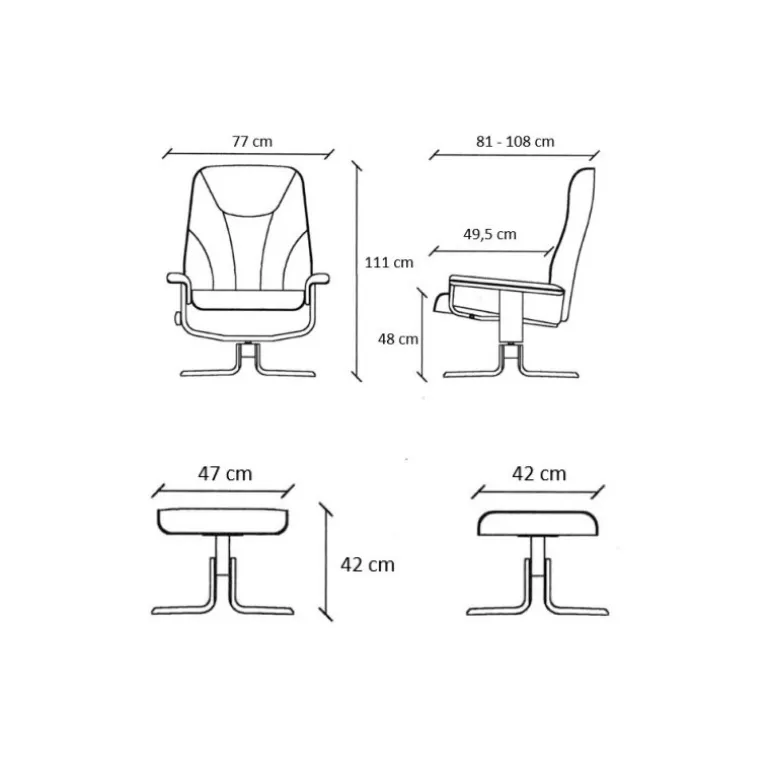 - Dybde: 81 cm (108 cm ved tilbagelæning)