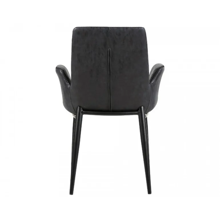 Elegant spisebordsstol i sort tekstillæder, i patina look. Spisebordsstolen tilføjer en ekstra charme til din stue og har et smukt og iøjnefaldende design, der kombinerer retrolook med et moderne formsprog.