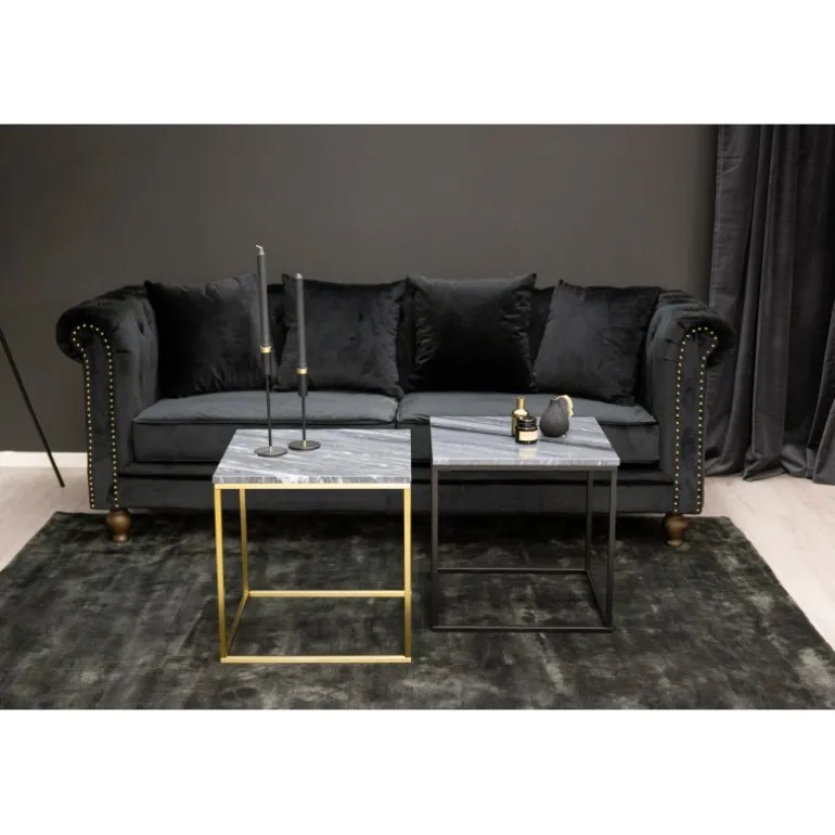 Sæt tonen med denne sofa og lad dit hjem blive dekoreret af et håndværk med tradition! Den klassiske Chesterfield sofa er rustik og luksuriøs i sit udtryk med meget karakteristiske detaljer. Fløjl er en stilfuld sofaserie i Chesterfield design med lækkert fløjlsstof og dekorative dybe-knapper. Denne rummelige og komfortable 3 personers sofa med lige design og pompøs sort polstring giver en kunstnerisk og smuk følelse til dit hjem. De rustikke træsofabener bidrager til sofaens elegante design og moderne look. Plejeråd: Fløjl har en tendens til at få trykmærker, når luv ligger ned. Trykmærkerne kan få stoffet til at se slidt ud, hvilket er helt normalt for denne type materiale. Afhængigt af hvordan lyset falder, kan stoffet ændre sig i de mest forskellige nuancer.
