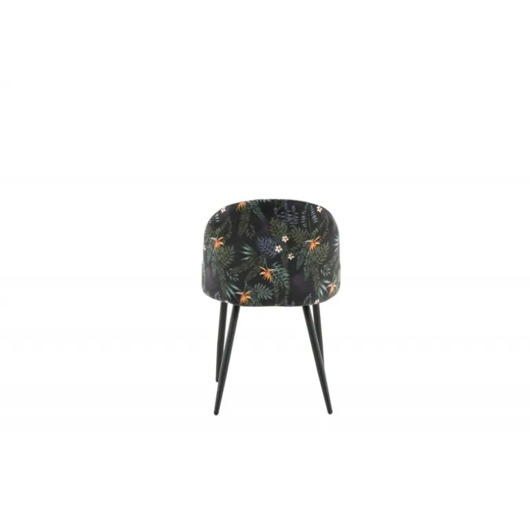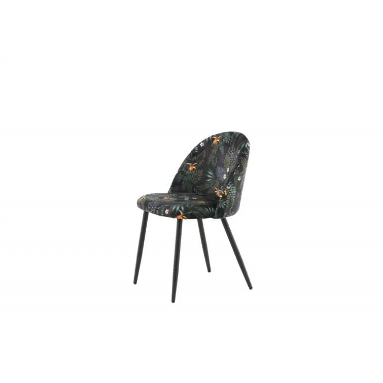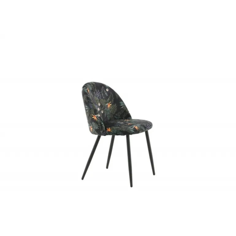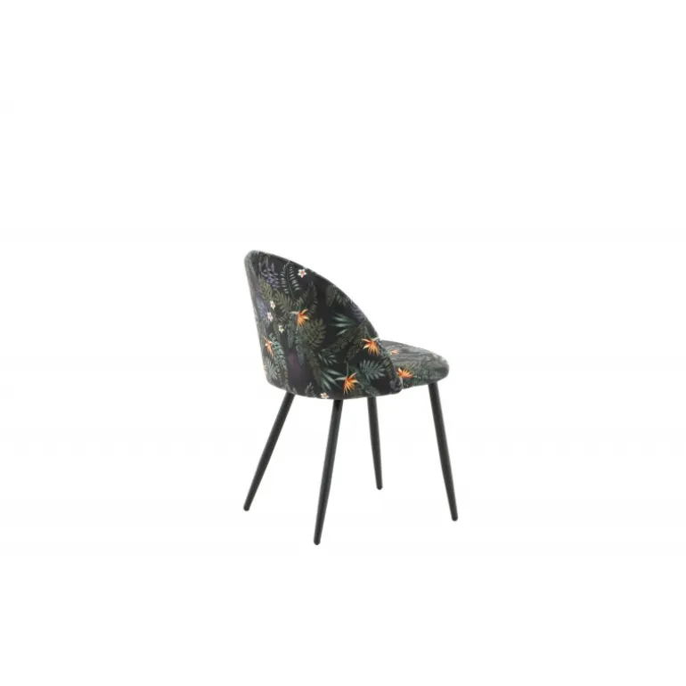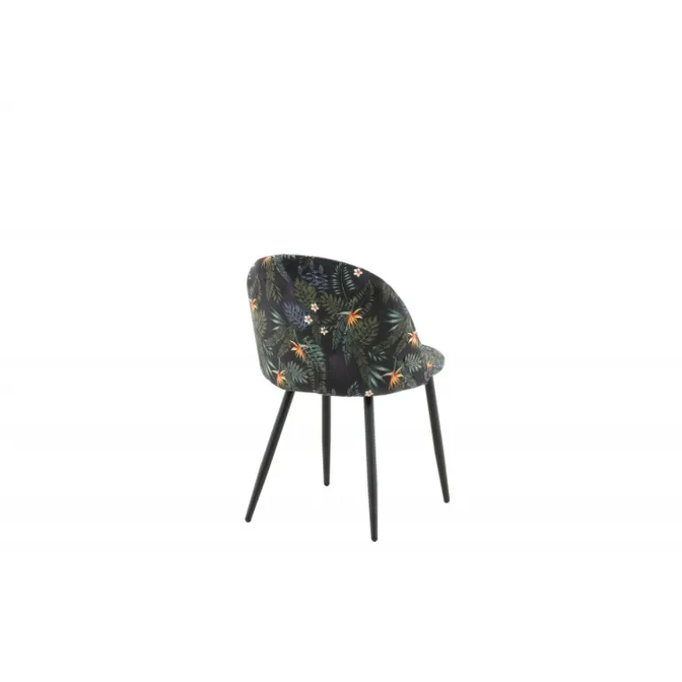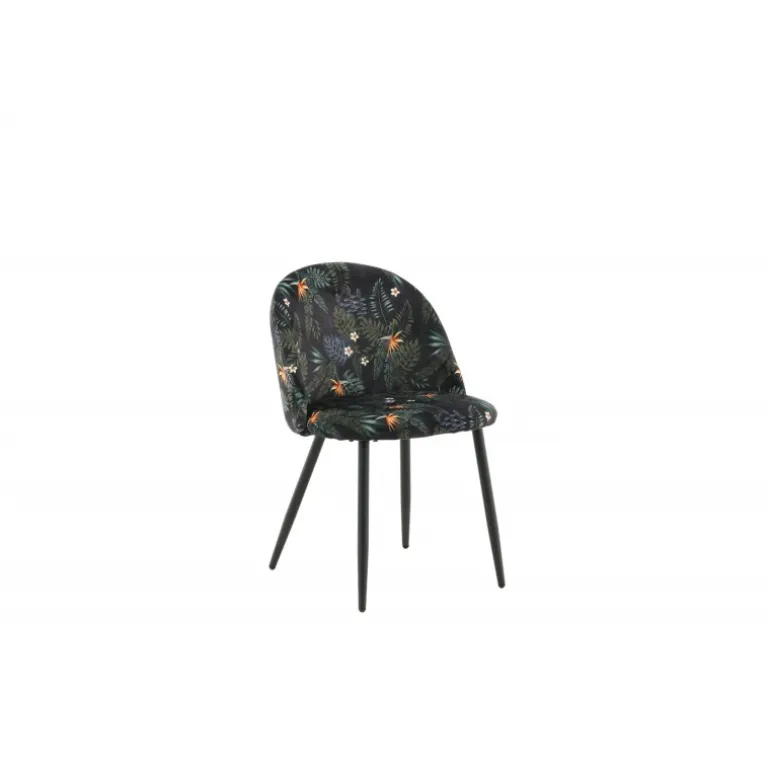 Skab et blikfang, der skiller sig ud med flerfarvede spisebordsstole fra Fløjls-serien! Denne spisebordsstol har en ramme og ben i sort pulverlakeret metal og et stilfuldt design med en rund ryg. Ryg og sæde er polstret med sort blomsterprintet polyesterstof, der skaber et personligt præg i indretningen. Lettere samling er påkrævet. Plejeanvisning: Fjern pletter med det samme, gnid ikke, men forsøg at suge op forsigtigt med en klud. Hvis pletterne ikke går væk, prøv en pletfjerner, som du først tester på en mindre synlig del af stoffet. Vi anbefaler, at større møbler skummes mindst tre gange om året.