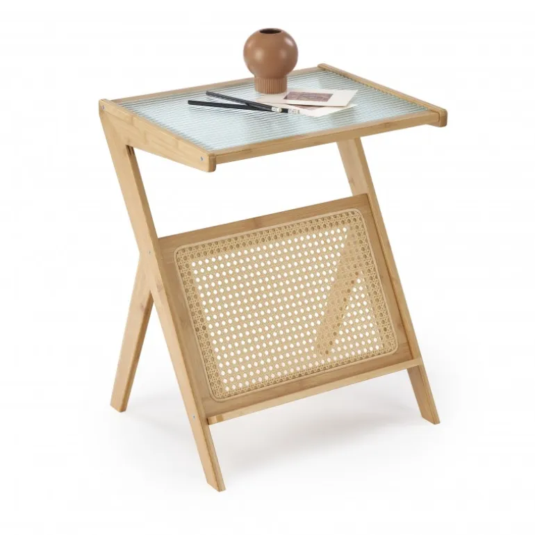 FLORA sofabord i naturlig stil er den perfekte tilføjelse til ethvert hjem. Med dimensionerne 45/46/56 cm er det ideelt til både store og små rum. Lavet af glas, naturlig rattan og solid bambustræ, kombinerer det holdbarhed med æstetisk skønhed. Den naturlige farve passer perfekt ind i moderne som traditionelle indretninger. Uanset om du vil nyde din morgenkaffe eller fremvise dine yndlingsbøger, er FLORA sofabordet det oplagte valg.