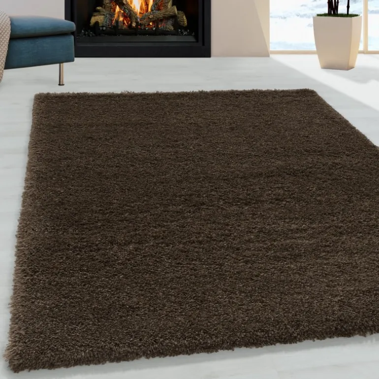 Fluffy Shaggy Tæppeløber Ensfarvet - Brun