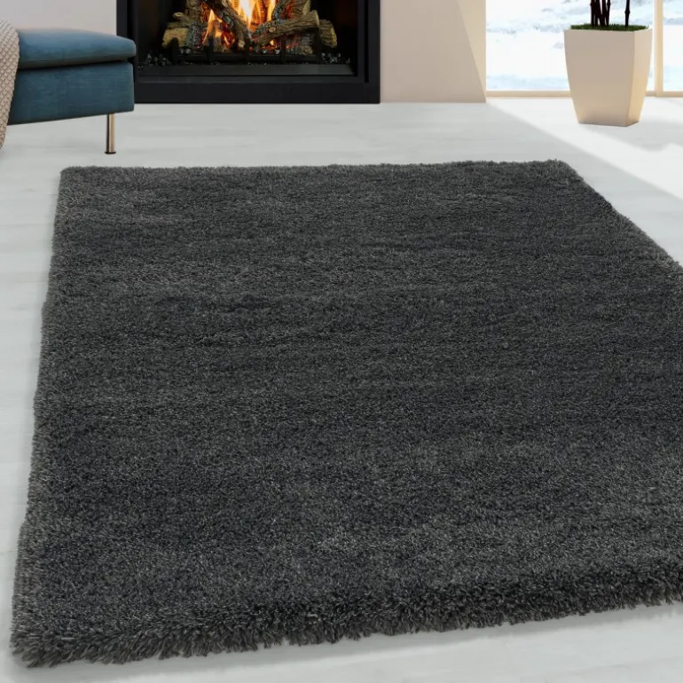 Fluffy Shaggy Tæppeløber Ensfarvet - Grå