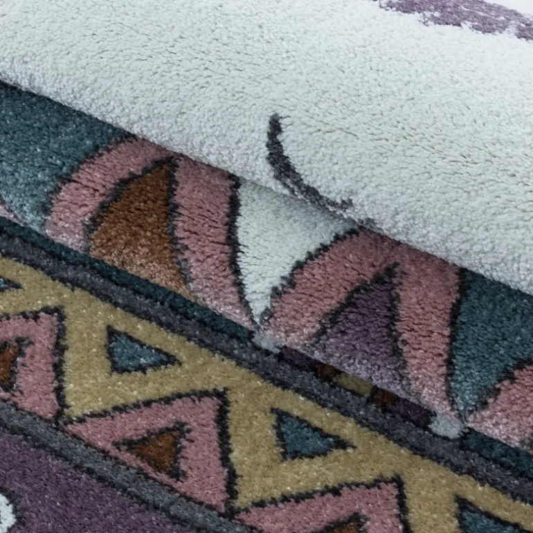 Dette Funny tæppe er fremstillet af 100% Polypropylen, som er syntetiske fibre, hvilket gør det særdeles slidstærkt.